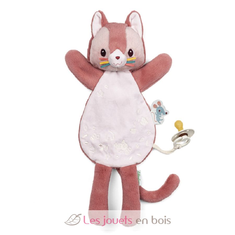 Adecuado desde su nacimiento, este peluche de Jeanne la gata lo tiene todo para complacer. Es ante todo un compañero constante para el bebé, muy gentil y con una cara sonriente y amigable. El bebé lleva su peluche rosa a todas partes y se mantiene seguro y calmado durante todo el día.