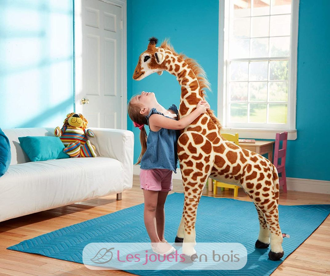 Esta jirafa de más de 1,30 metro de altura es ideal para aportar un toque exótico y divertido a cualquier rincón de la casa. Un peluche gigante que no tardará en convertirse en un compañero inseparable de tu hijo. Peluche gigante Jirafa, un gran peluche de la marca Melissa and Doug. Referencia 12106.