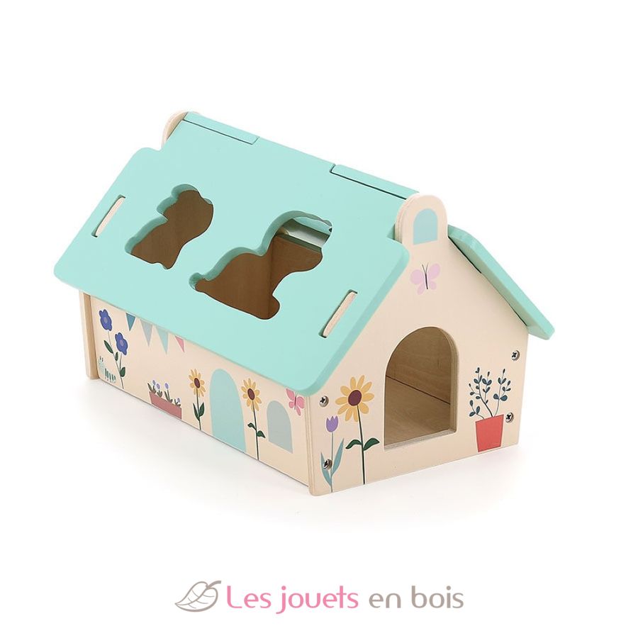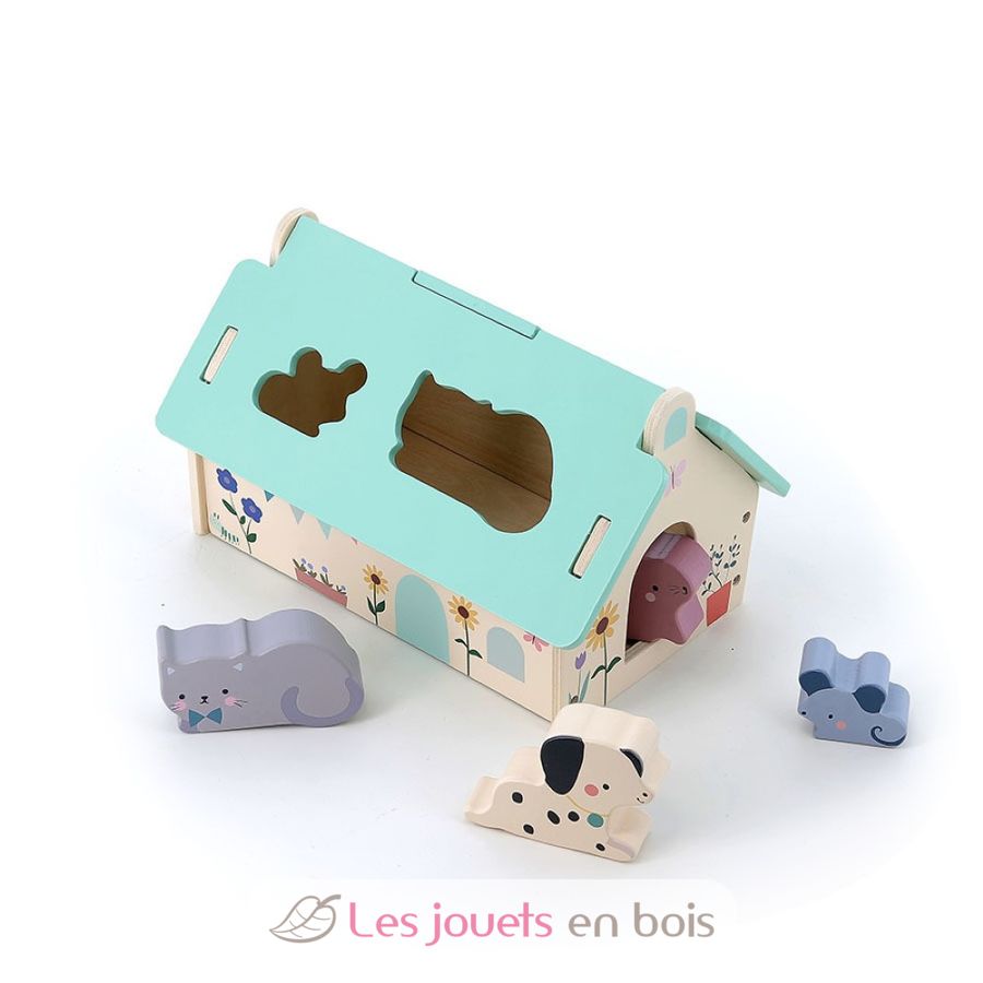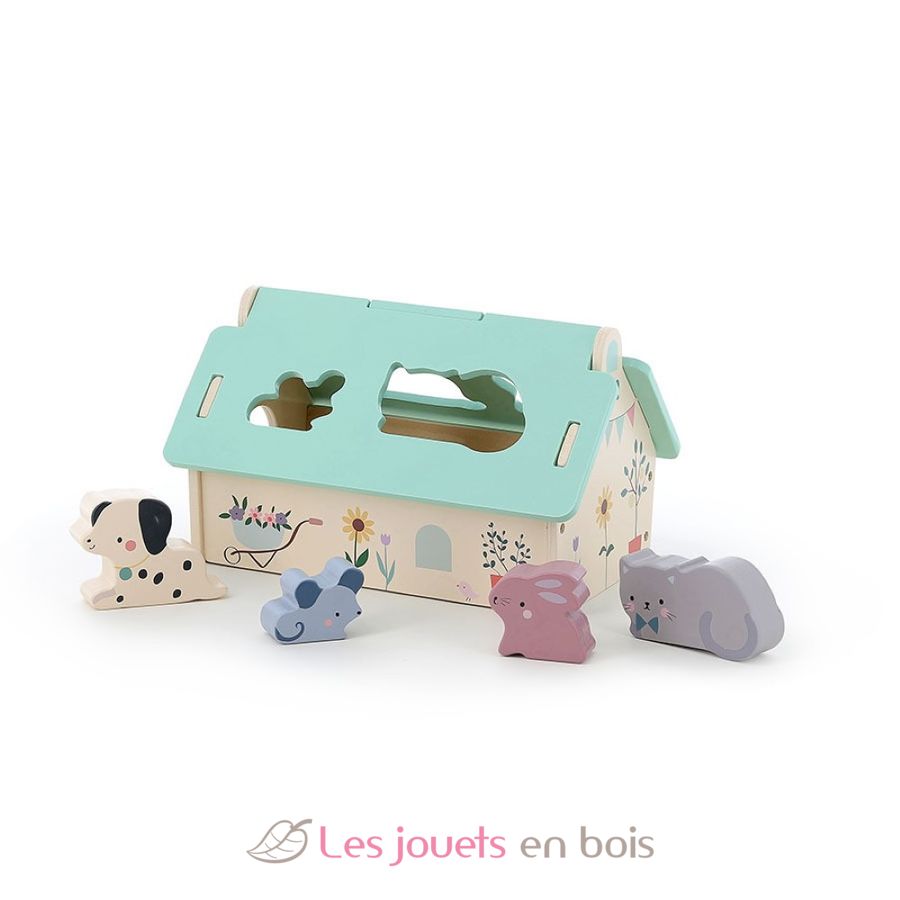 ¿Quién se esconde en esta bonita casa de madera? ¿Un perro pequeño? ¡Sí, pero no sólo eso! Le acompañan un ratón, un gato y un conejo.