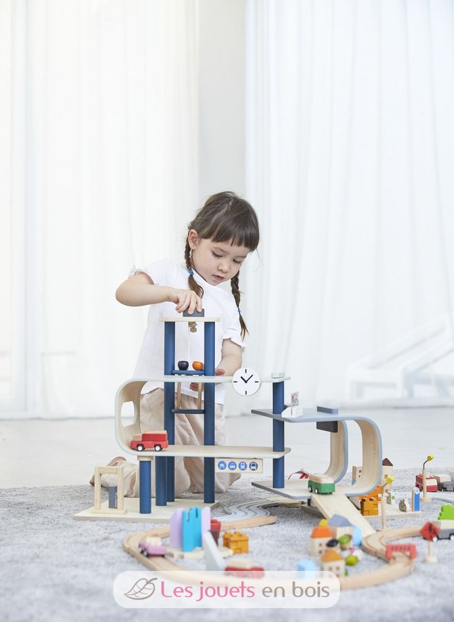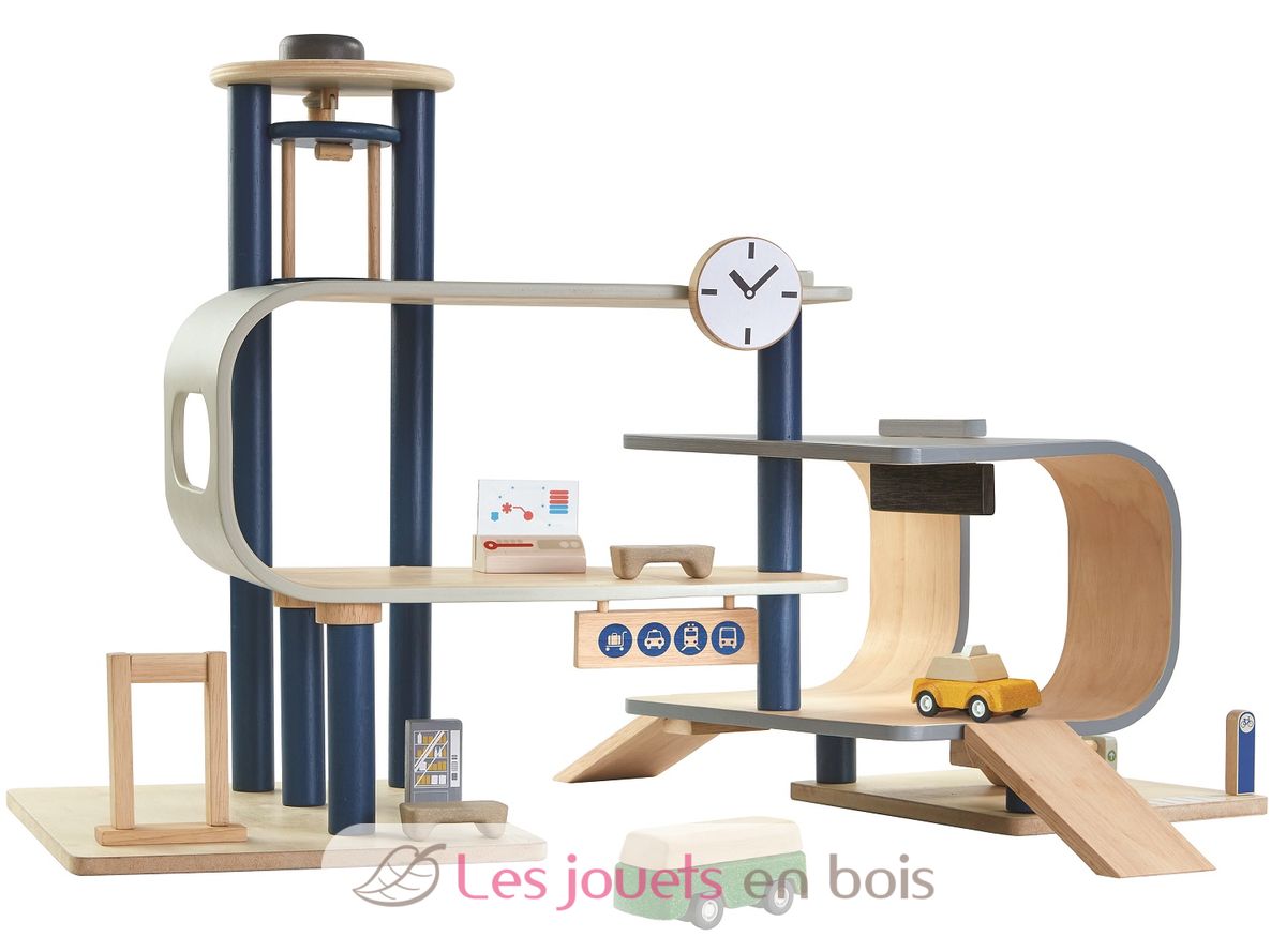 Mi Gran Estación, un garaje de madera de diseño para niños de Plan Toys. Referencia PT6291.