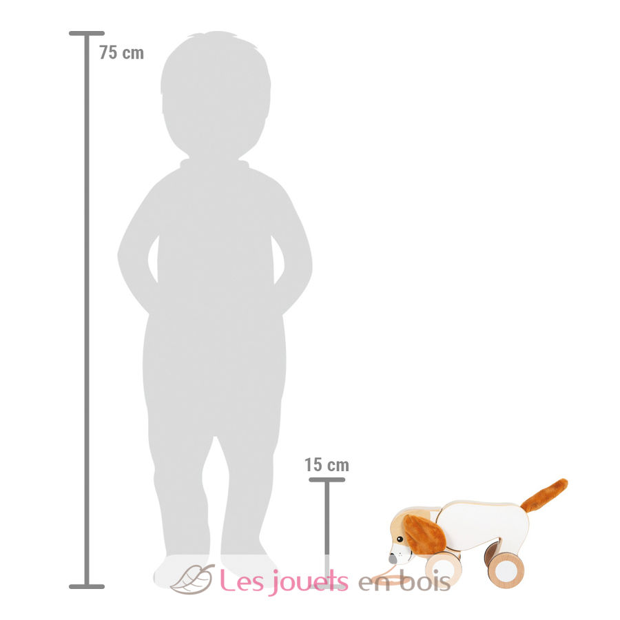El perro de madera para arrastrar fomenta la motricidad y moviliza a los más pequeños para que gateen y caminen de forma lúdica. Especialmente práctico: las orejas de peluche se pueden quitar y lavar.