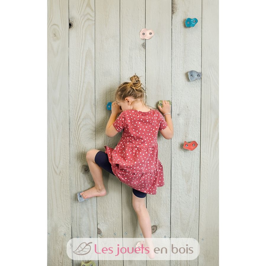 Este conjunto de 5 piedras de escalada de diferentes formas hechas de plástico estable trae la diversión de la escalada en colores modernos a cualquier pared.