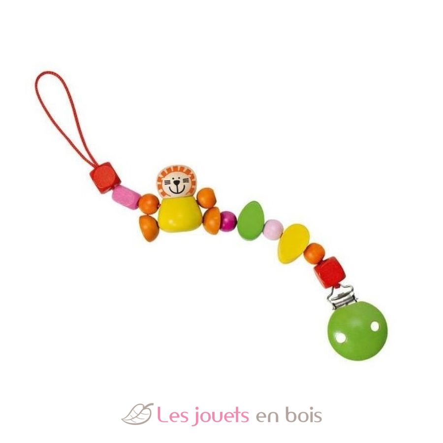 ¡El león es un excelente guardián del maniquí! Rodeado de grandes hojas verdes, el simpático león se siente perfectamente en casa y cuida aún más el chupete del bebé. Esta pinza de madera para chupetes está fabricada en Alemania por la empresa Selecta.