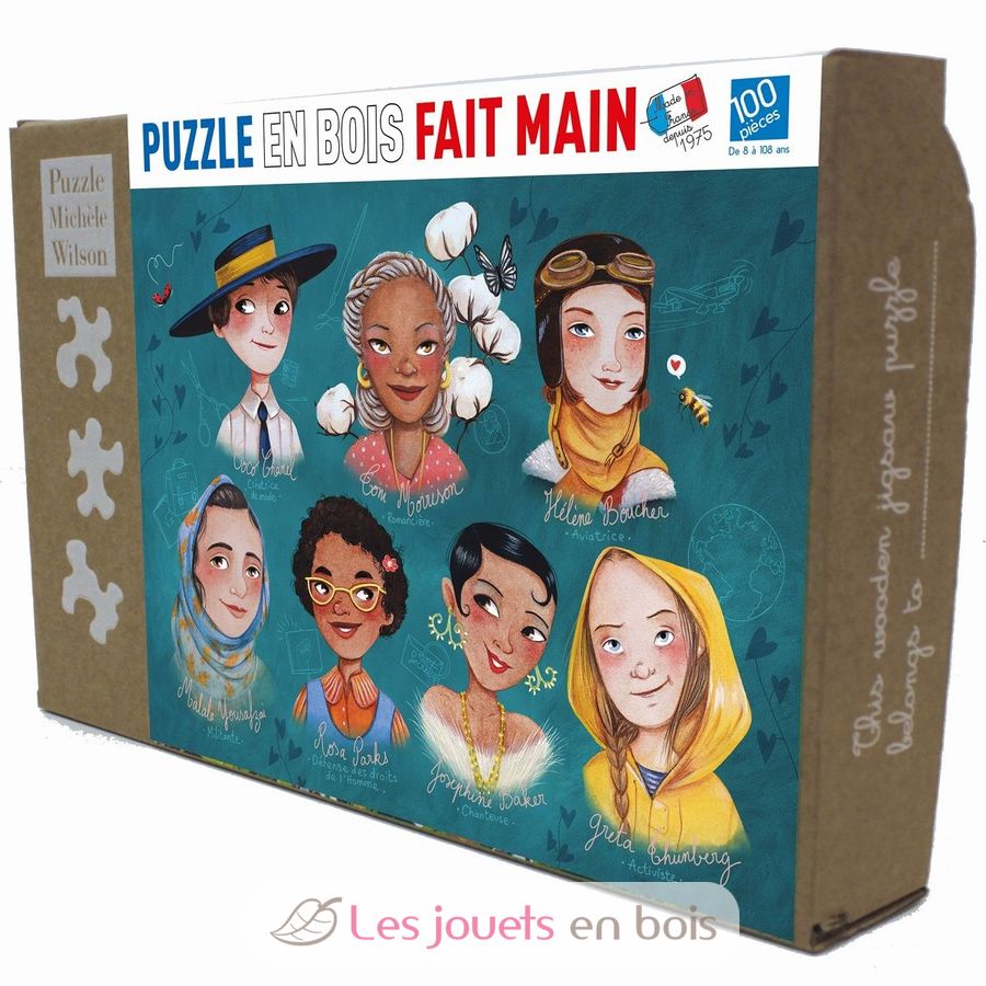 Un puzzle de madera de 100 piezas fabricado en Francia por Michele Wilson. Rompecabezas de madera para adultos.