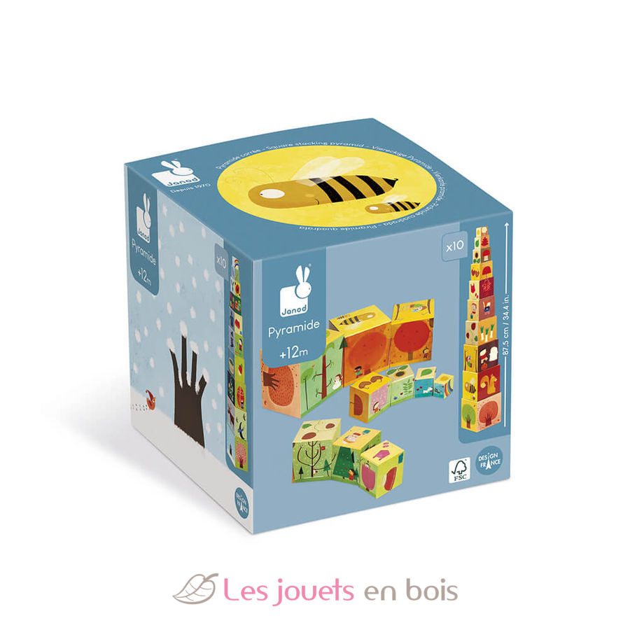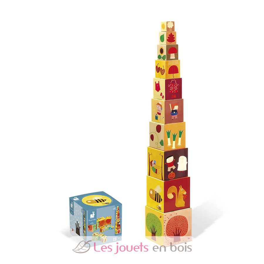 Pirámide cuadrada 4 estaciones, cubos anidados de la marca Janod. Referencia J02917.