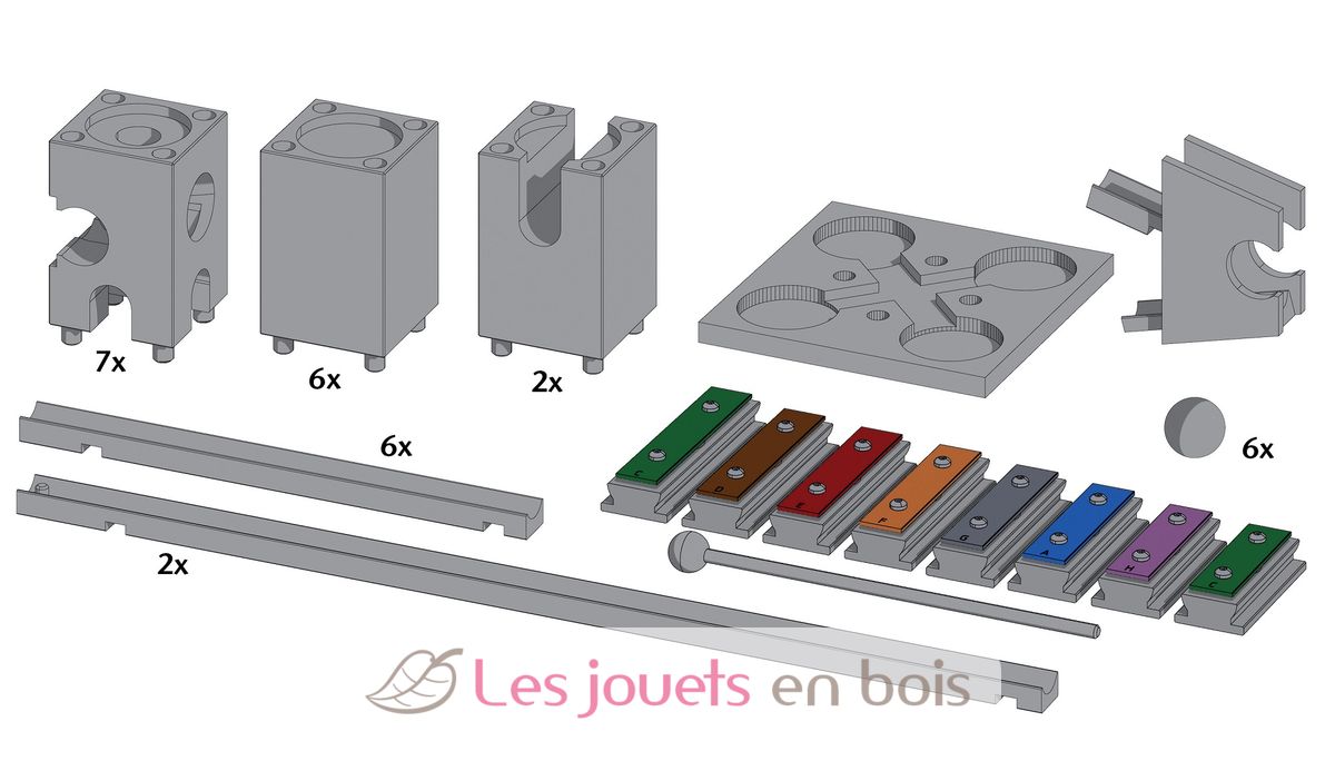Xyloba es un juego de construcción musical para grandes y pequeños. Ideal para el despertar musical, estimula la motricidad y la imaginación, así como el aprendizaje lúdico de la música. Con Xyloba Mezzo (40 piezas), los niños pueden construir diferentes pistas de canicas musicales mientras crean hermosas melodías con las 8 cuchillas de sonido intercambiables.