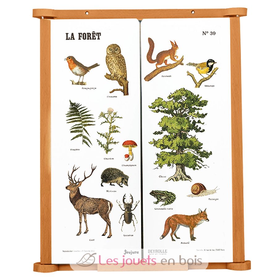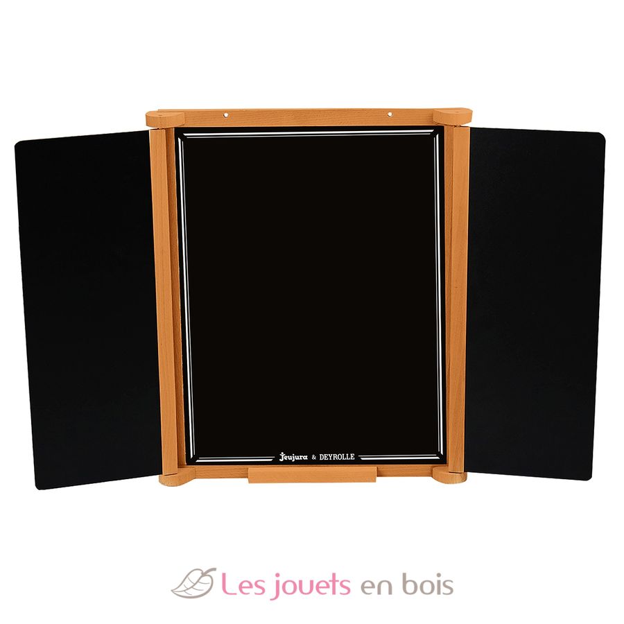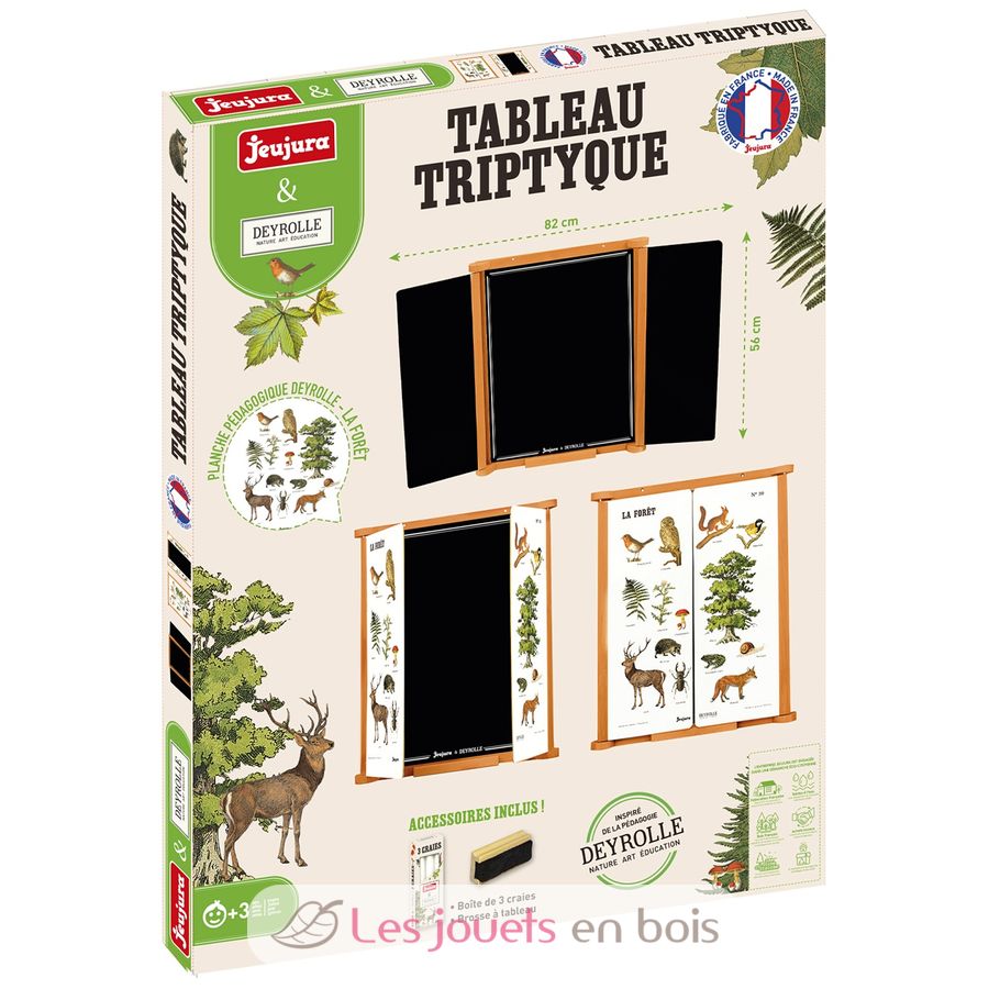 Esta pizarra infantil consta de una pizarra central para escribir con tiza y dos paneles: uno para tiza y el otro con una pizarra educativa sobre el bosque, creada por Deyrolle. Incluye accesorios: una caja de 3 tizas y un borrador de pizarra.