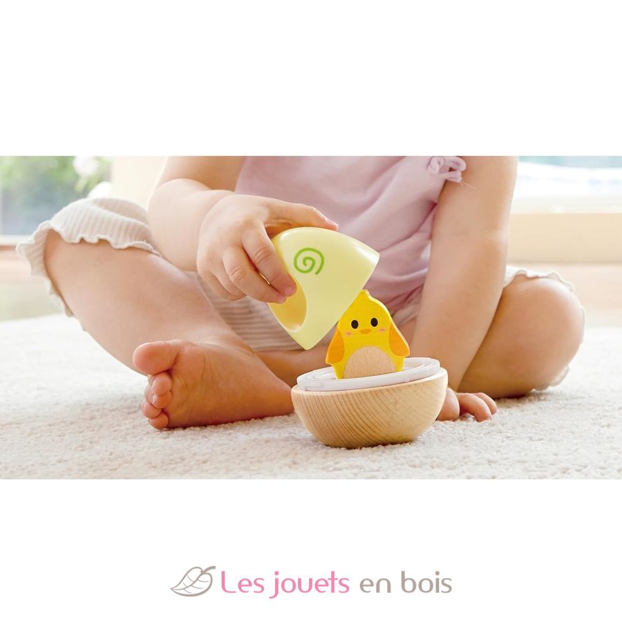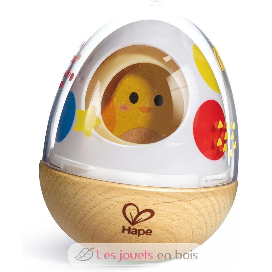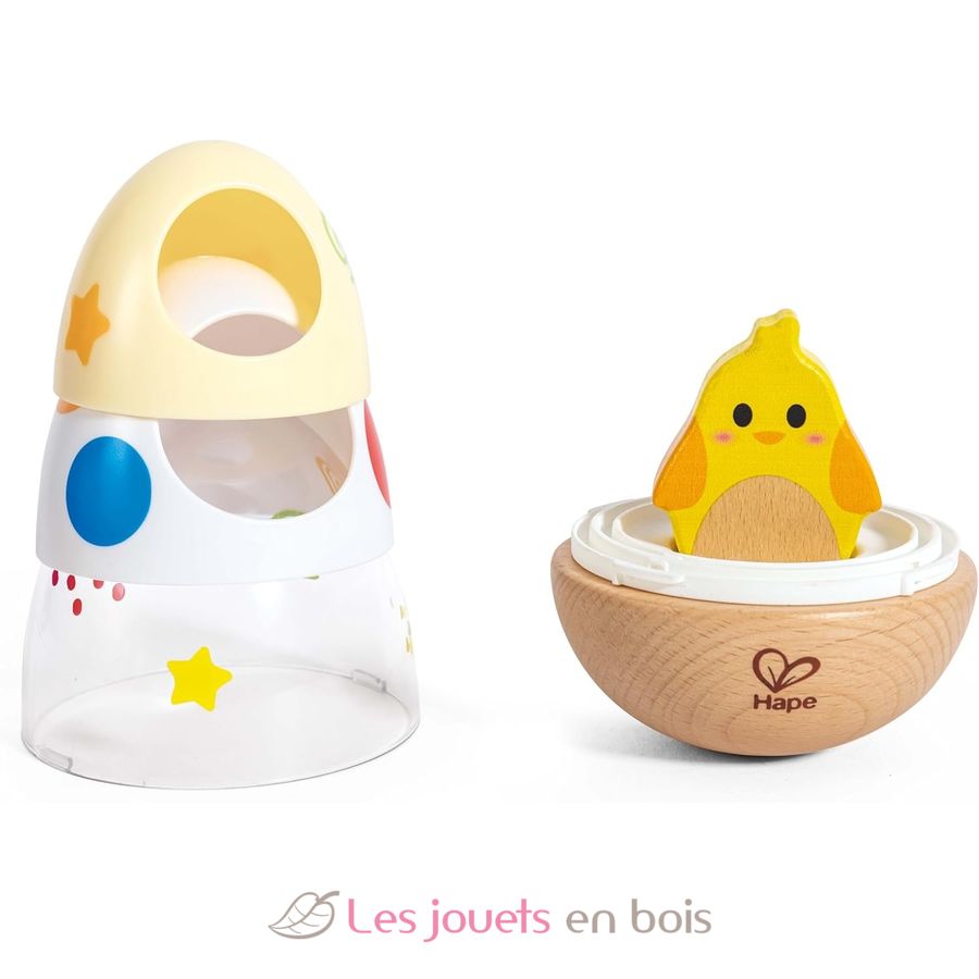 Descubre la diversión tambaleante con el polluelo apilado de Hape. Apila las coloridas cáscaras de huevo y observa cómo se tambalean y oscilan de formas encantadoras e impredecibles. Quizá encuentres el pollo oculto también.