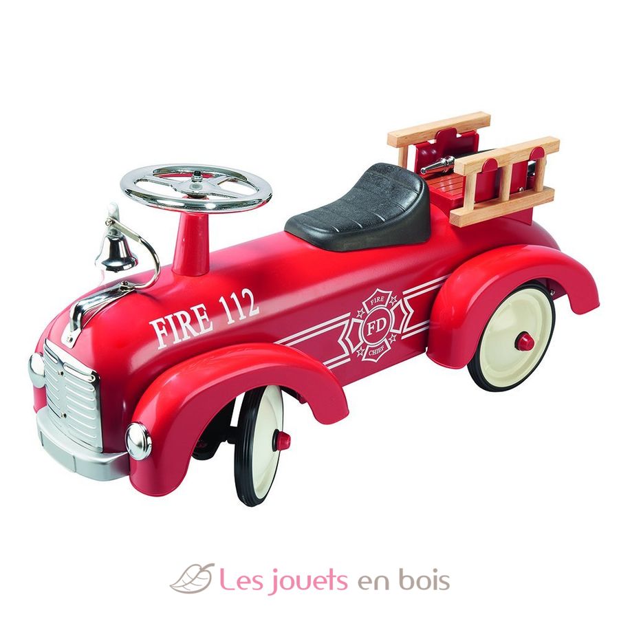 ¡Pin-pon pin-pon, los bomberos están aquí! Un transporte de camiones de bomberos de metal y plástico con cuatro neumáticos de goma. Un gran transportador metálico de aspecto retro con dos escaleras de madera extraíbles, una campana real y una manguera de incendios. Diversión garantizada!