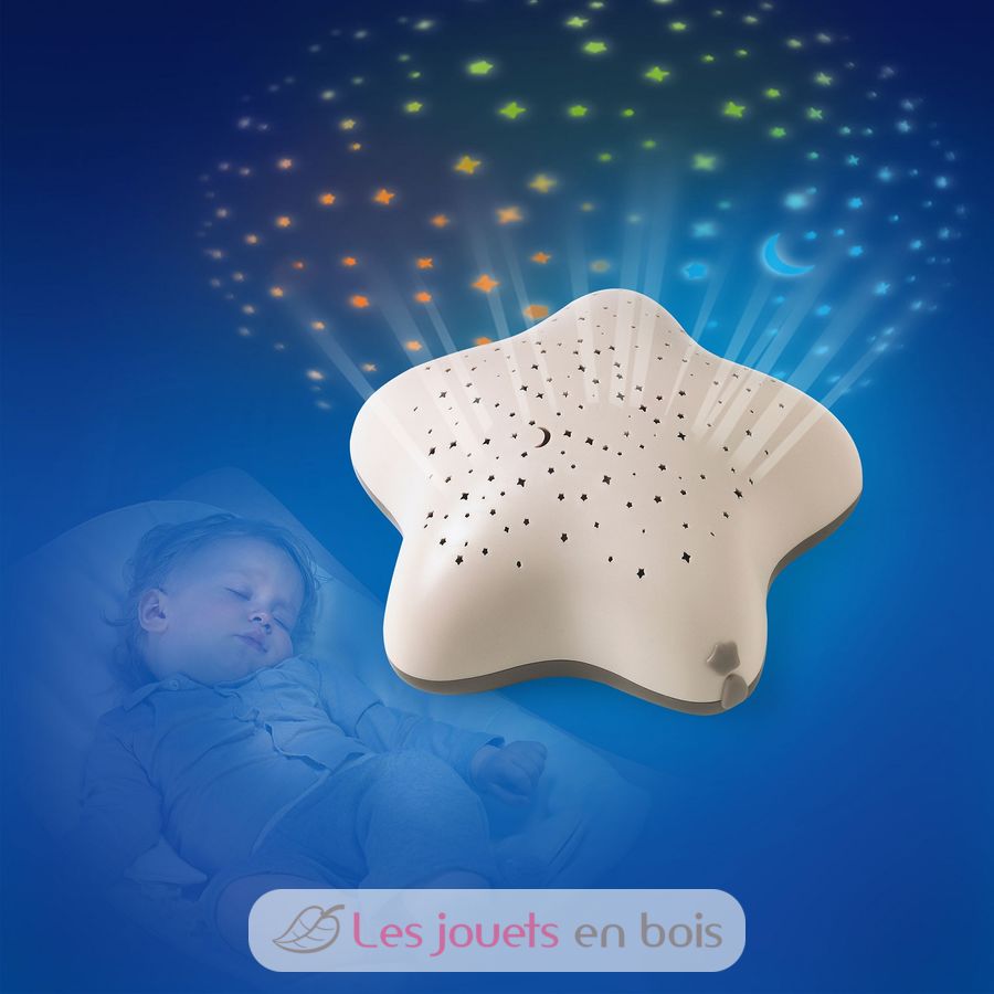 Este proyector musical de estrellas de color beige proyecta un bonito cielo estrellado en el techo para ayudar a los niños a conciliar el sueño tranquilamente. Las estrellas cambian suavemente de color pero también puedes fijar tu color preferido. Además del relajante cielo estrellado, esta luz nocturna emite una suave melodía (2 volúmenes posibles o sin música) para que ayudar a tus hijos a conciliar el suelo. Es compacta e ligera para que lo puedas instalar en cualquier rincón de la casa.