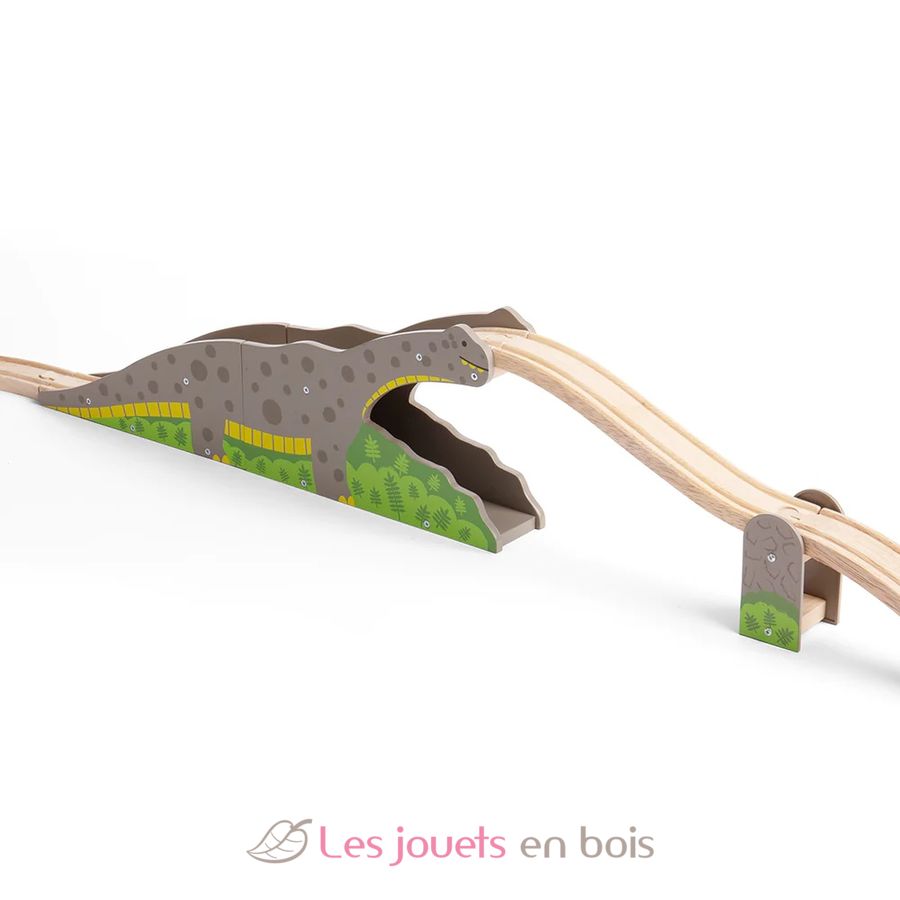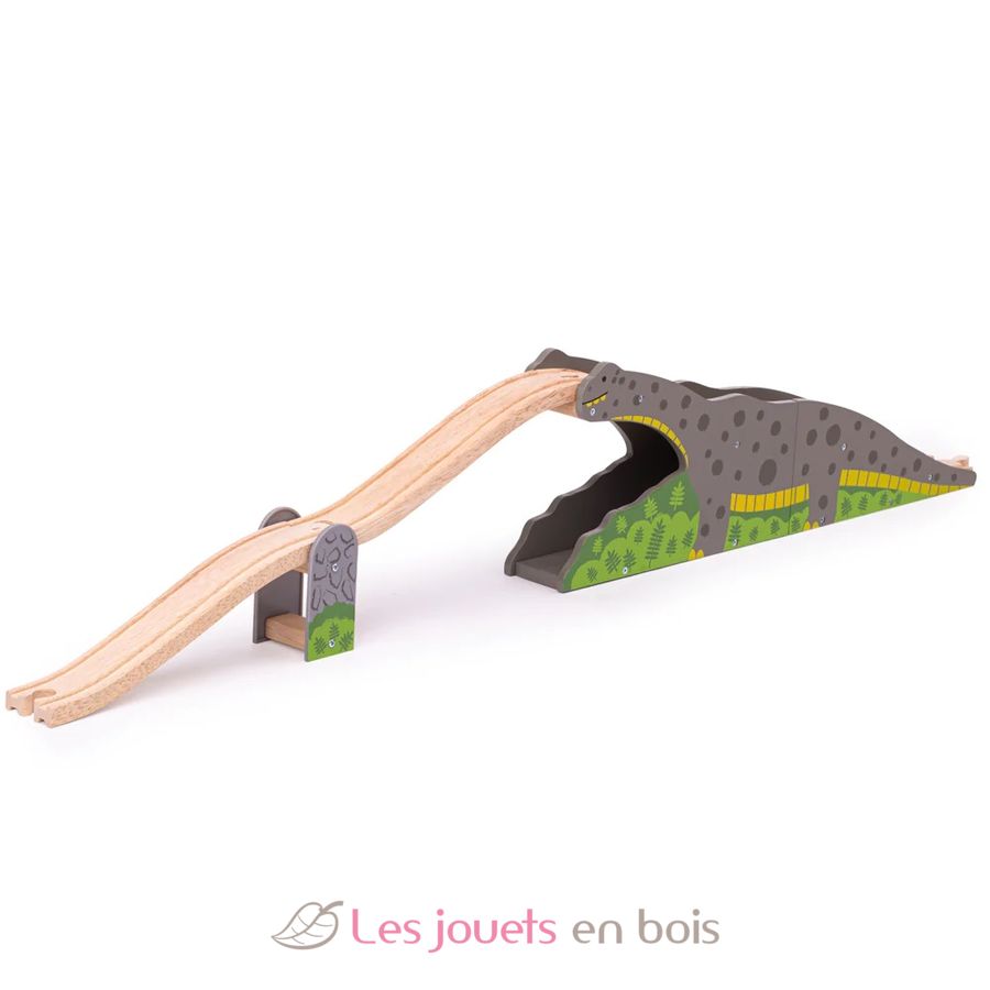 El emocionante mundo de los ferrocarriles y los dinosaurios cobra vida a medida que los trenes suben por la espalda del Bronto-puente y bajan a toda velocidad por el otro lado.