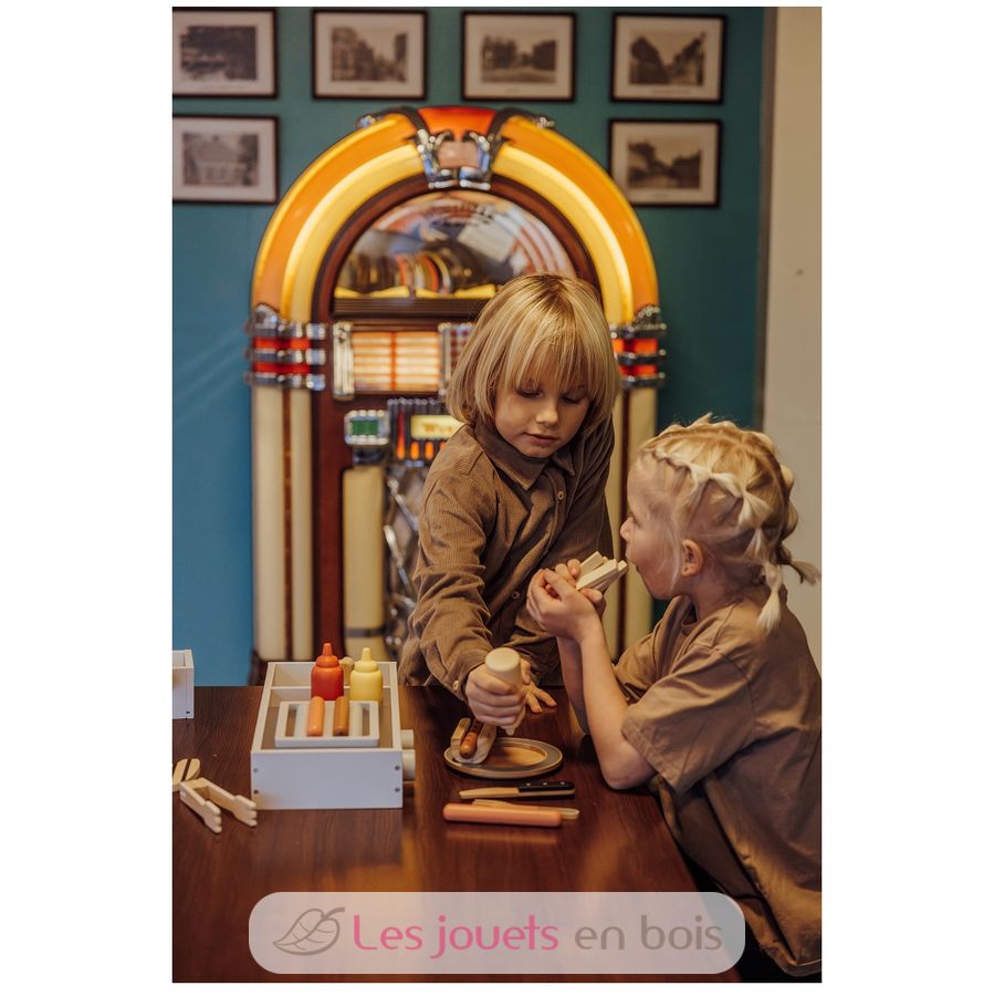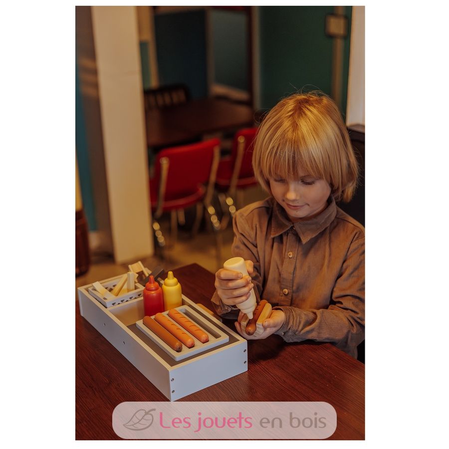 ¡Eleva el nivel de juego de los niños con este puesto de perros calientes de comida rápida, diseñado para horas de diversión imaginativa! Fabricado en madera resistente, este encantador juego trae la emoción de un puesto de comida rápida a casa, ofreciendo todo lo que los niños necesitan para tener su propio puesto de perros calientes: patatas fritas, kétchup y mucho más.