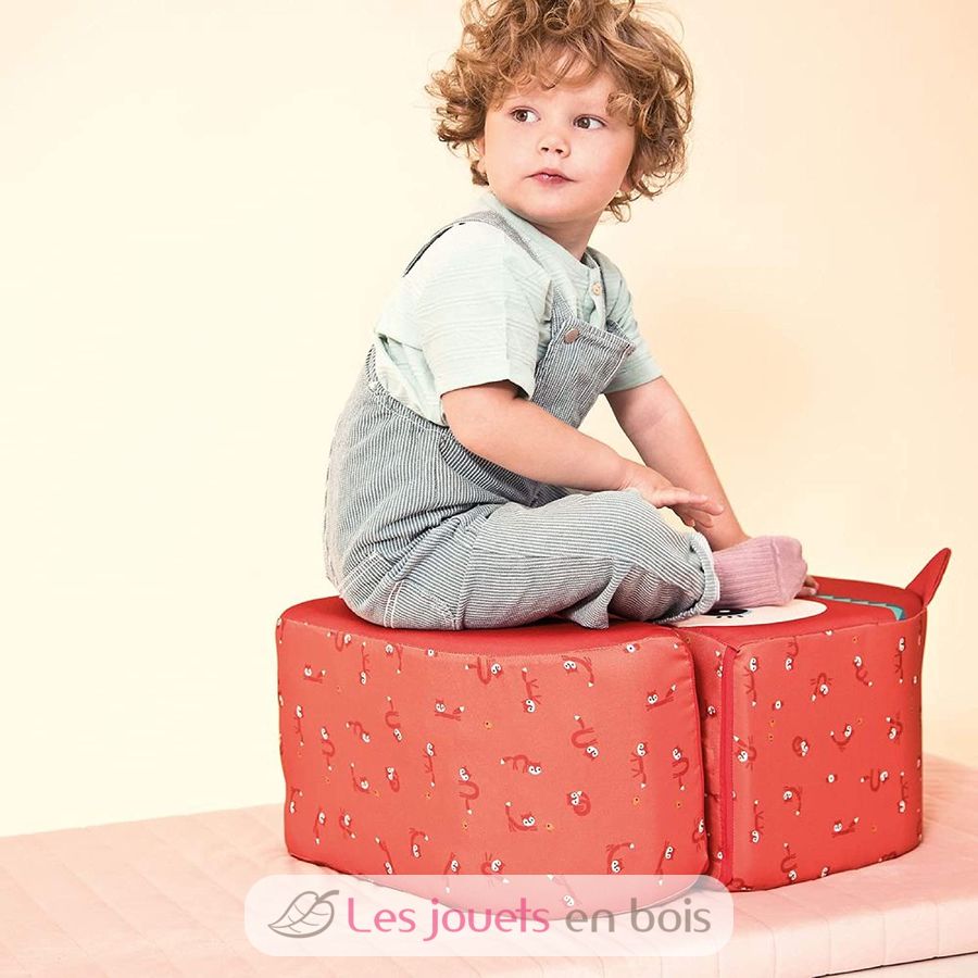 En este precioso reposapiés modular con dibujos, tu hijo puede sentarse o tumbarse de varias maneras. Al desplegar el reposapiés, la hermana pequeña, el hermano o el mejor amigo pueden venir a unirse a él.