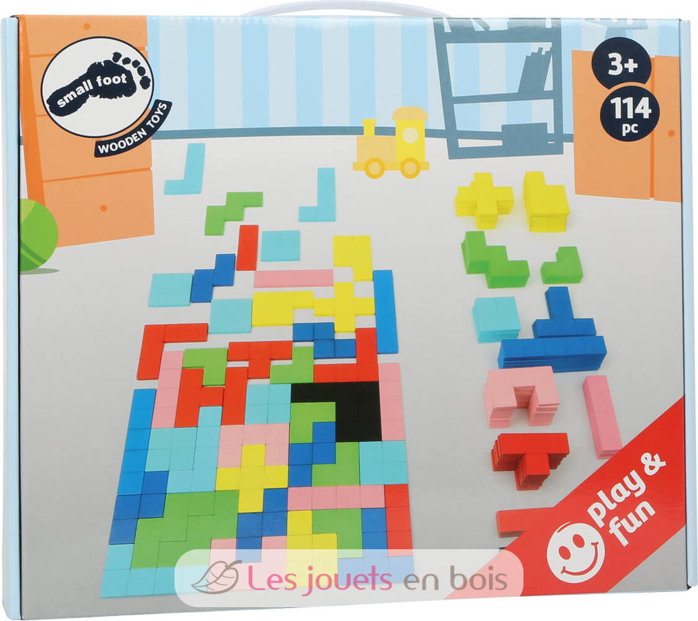 Este juego de madera de 114 piezas ofrece un sinfín de posibilidades de juego. Basado en el mundialmente famoso y popular juego de ordenador clásico, tienes que descifrar diferentes patrones geométricos. Las piezas diferentes se pueden utilizar para crear mosaicos coloridos o individuales en diversas combinaciones.