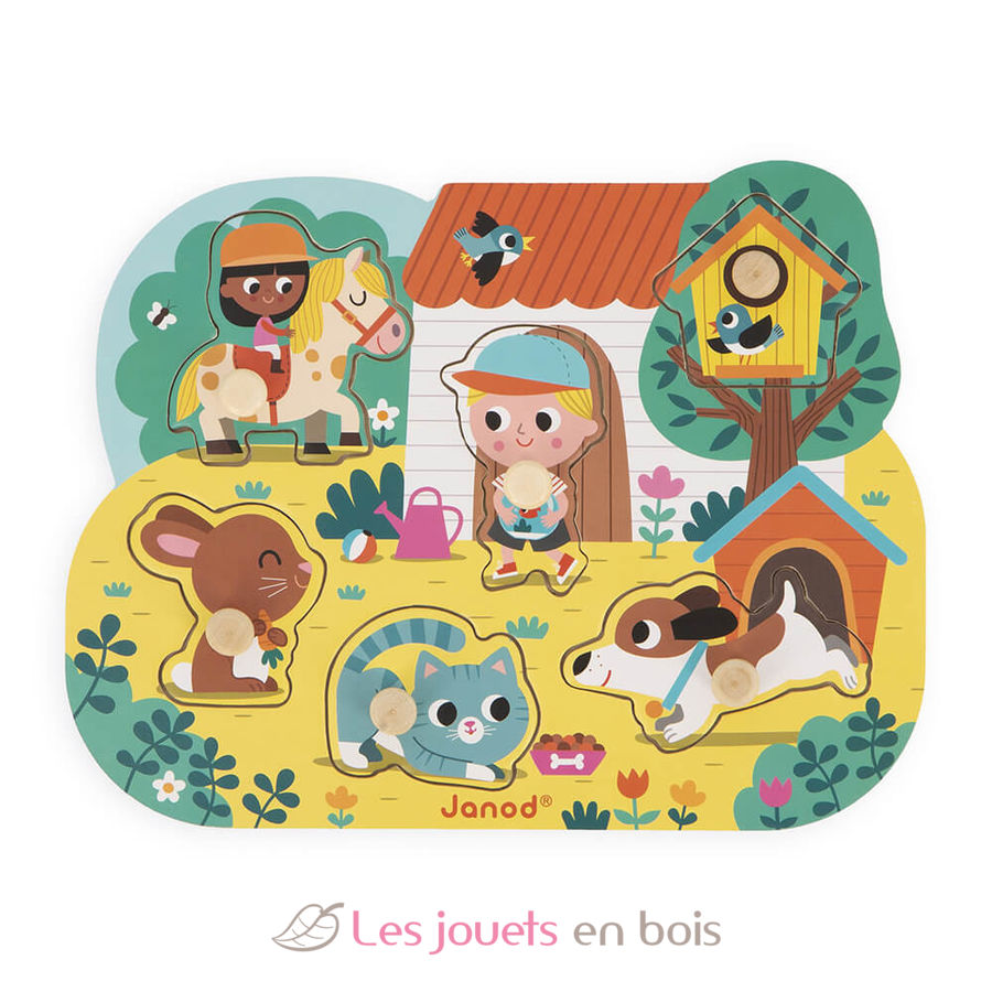 Este puzle de madera para bebés a partir de 18 meses permitirá al niño sumergirse en el universo de la granja mientras ejercita la lógica y la motricidad fina.