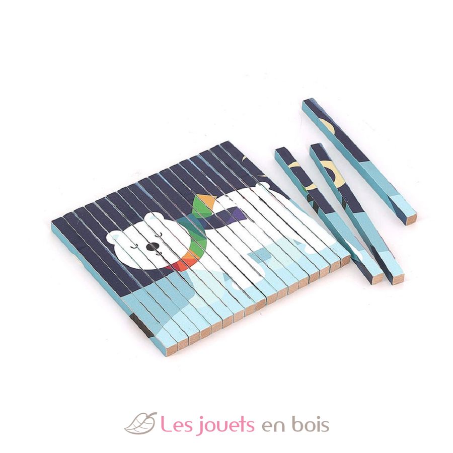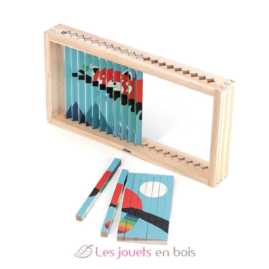 Este puzzle ofrece una experiencia de juego única para niños a partir de 5 años. Gracias a sus varillas de madera, revela 4 imágenes diferentes según el ángulo de visión. Ingenioso e innovador, incluye un marcador para guiar a tu hijo. ¡Un juego perfecto para despertar la curiosidad!