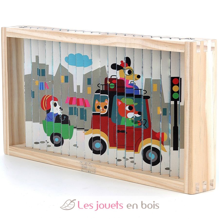 Este puzzle ofrece una experiencia de juego única para niños a partir de 5 años. Gracias a sus varillas de madera, revela 4 imágenes diferentes según el ángulo de visión. Ingenioso e innovador, incluye un marcador para guiar a tu hijo. ¡Un juego perfecto para despertar la curiosidad!