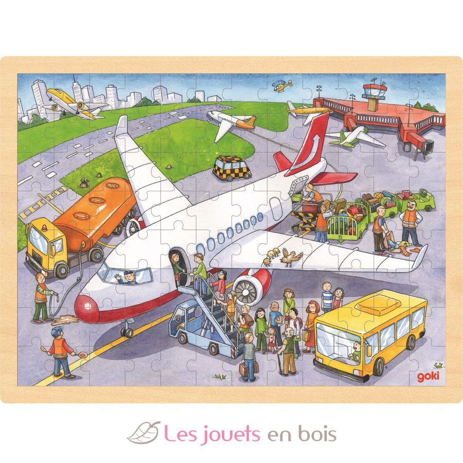 Puzzle Al aeropuerto, un gran puzzle de madera de 96 piezas de Goki. Referencia 57544.