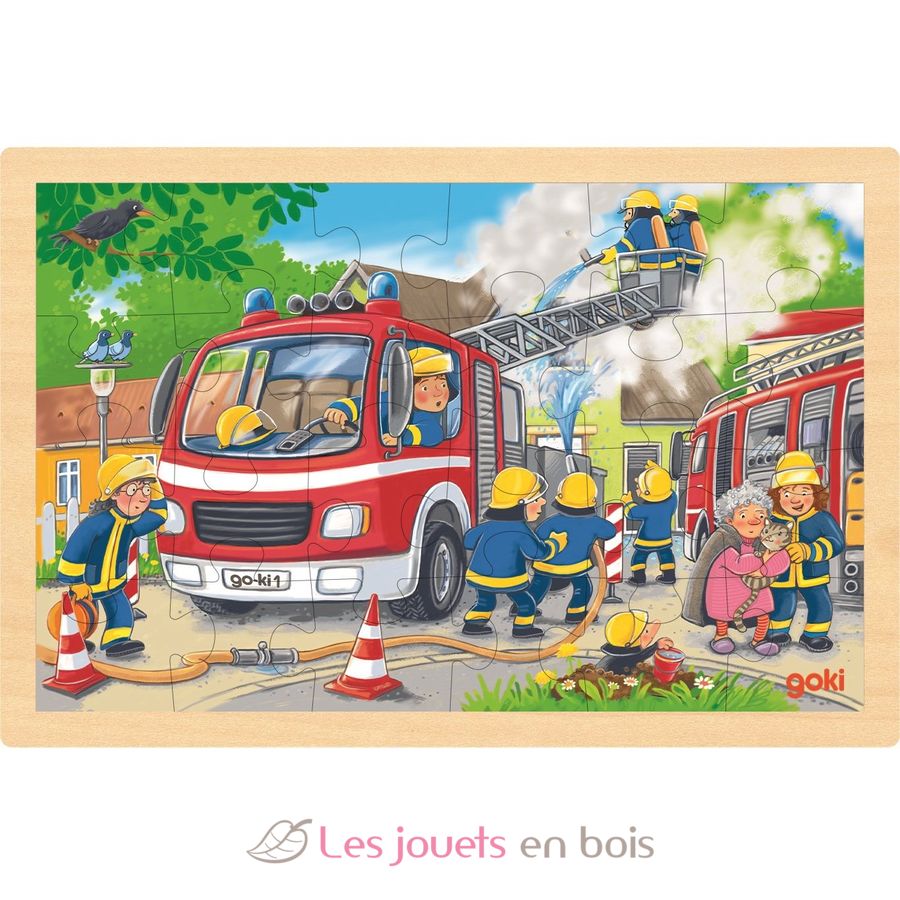 Puzzle bomberos en acción, un puzzle de madera de 24 piezas de Goki. Referencia 57318.