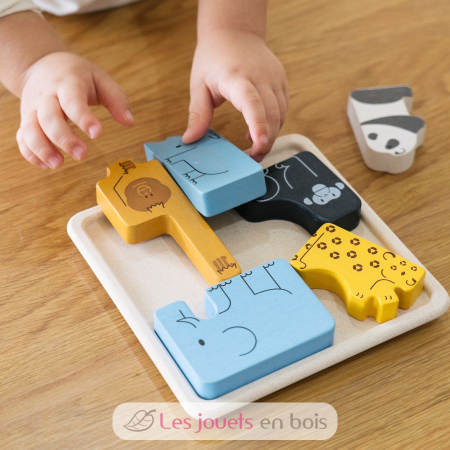 Puzzle animals 2 in 1, rompecabezas de los primeros años y juguete para apilar de Plan Toys. Número de pieza PT4644.