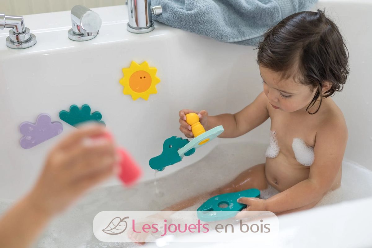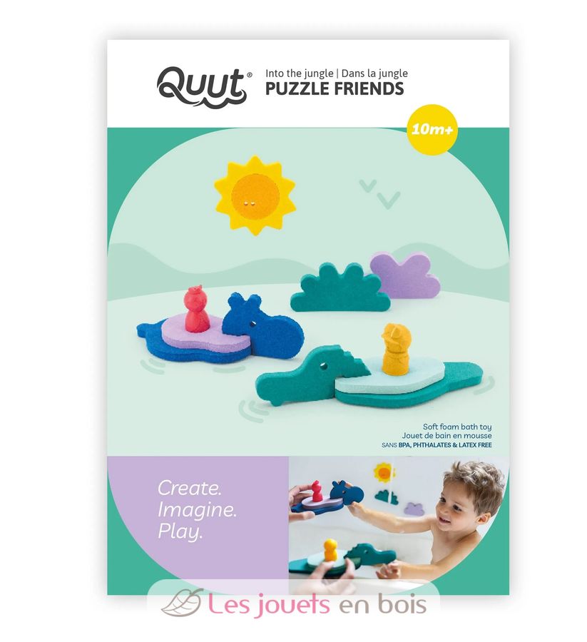 ¡Los puzzles de baño de Quut harán que la hora del baño sea un momento único y divertido! Las piezas de este puzzle de baño están fabricadas en suave espuma EVA. Flotan y se adhieren indefinidamente a las paredes húmedas (paredes de ducha, bordes de bañera, azulejos, etc.). Los más pequeños se divertirán combinando las diferentes formas para crear su mundo mientras desarrollan su destreza. El juego contiene 12 piezas: 10 piezas de espuma y 2 títeres de dedo de plástico duradero. Este rompecabezas estimula la imaginación, la motricidad fina y el sentido lógico de los más pequeños y hará que la hora del baño sea divertida y creativa.