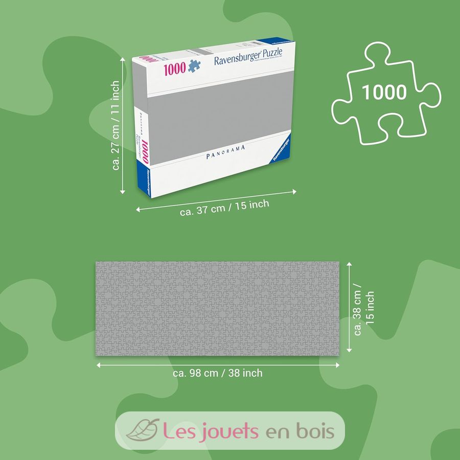 Esta caja contiene un puzzle de 1000 piezas. Para los expertos en rompecabezas, el formato de 1000 piezas es ideal para disfrutar de la actividad del rompecabezas, propicio para la relajación y la relajación. Cada pieza tiene una forma única y permite un perfecto montaje de la imagen elegida. Dimensiones del rompecabezas: 98 x 37,5 x 0,2 cm.