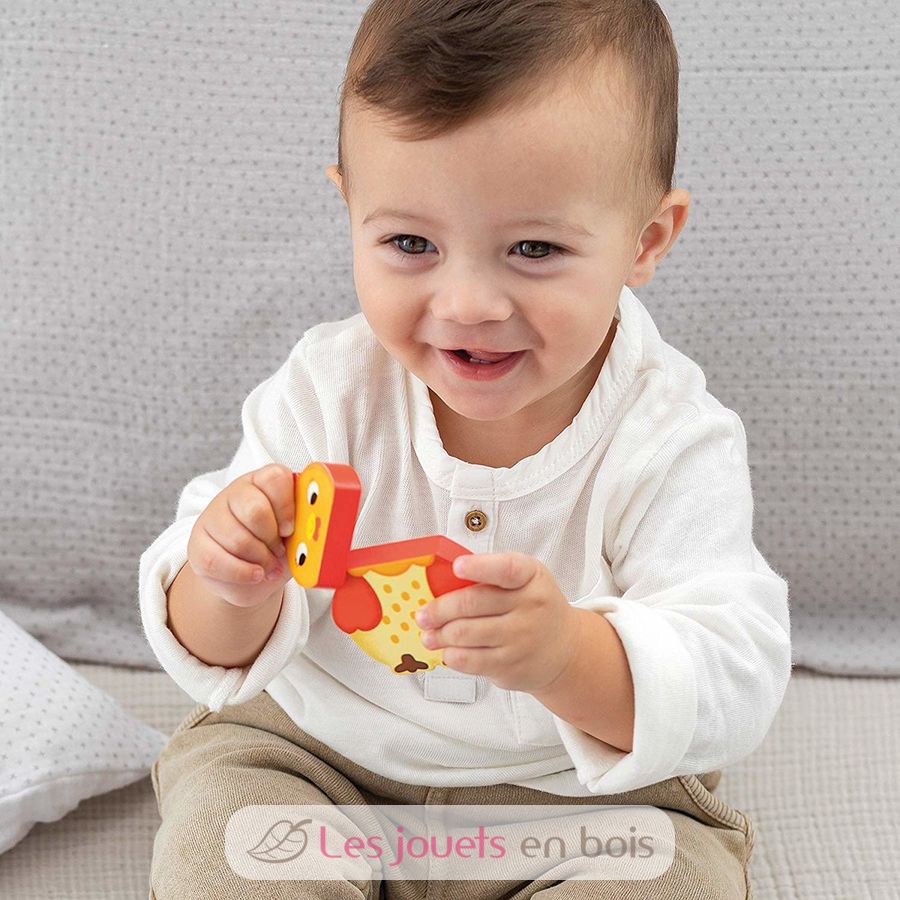 Gracias a este puzzle de madera, el niño aprenderá a coger las piezas y a asociarlas.