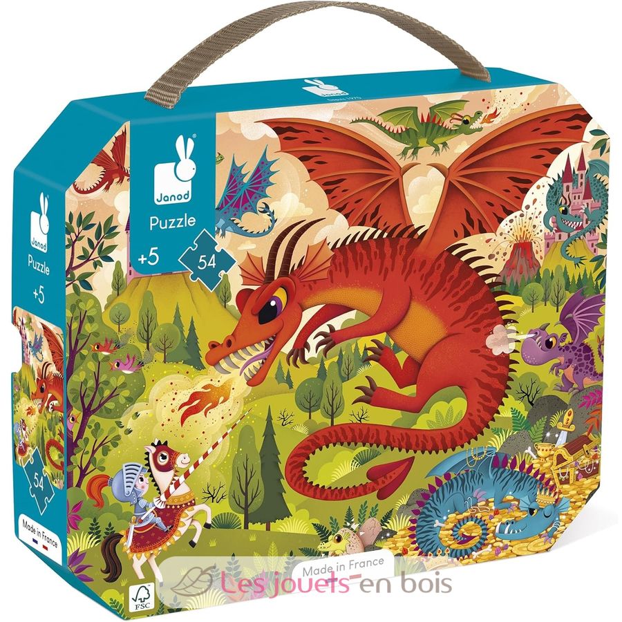Puzzle Reino de Dragones 54 piezas, un puzzle fabricado en Francia por Janod. Número de artículo J02392.