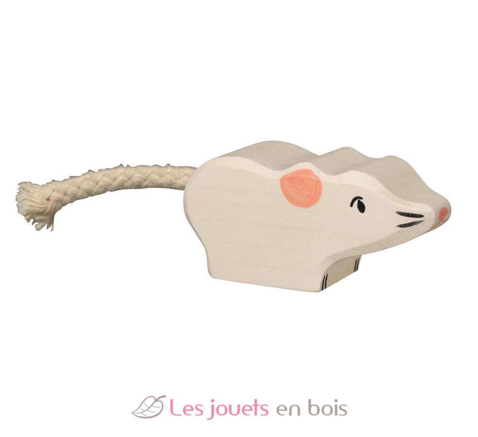 Ratón blanco, 5 x 1,9 x 2,5 cm, figura de madera Holztiger, ref 80541..