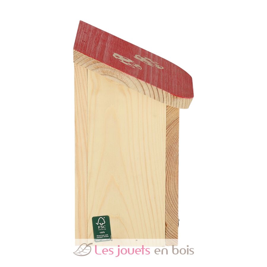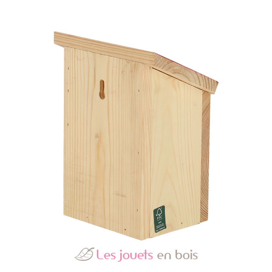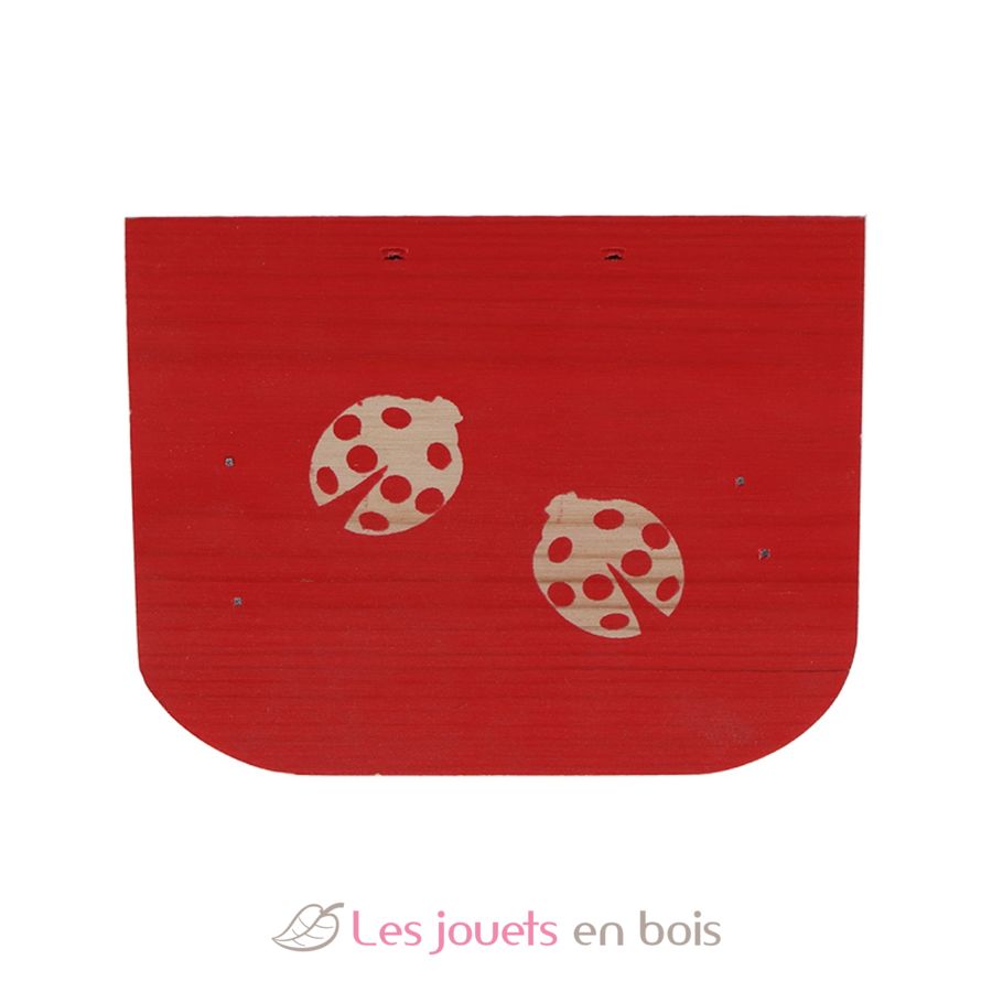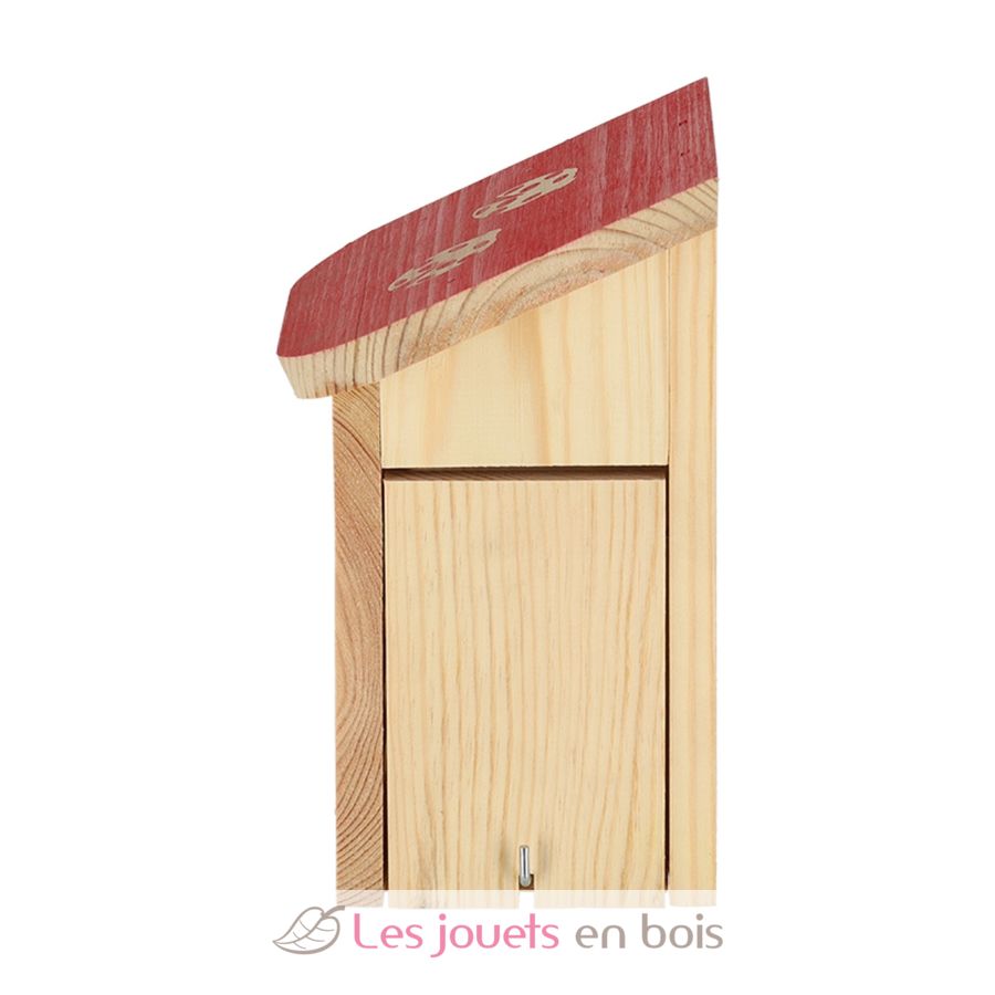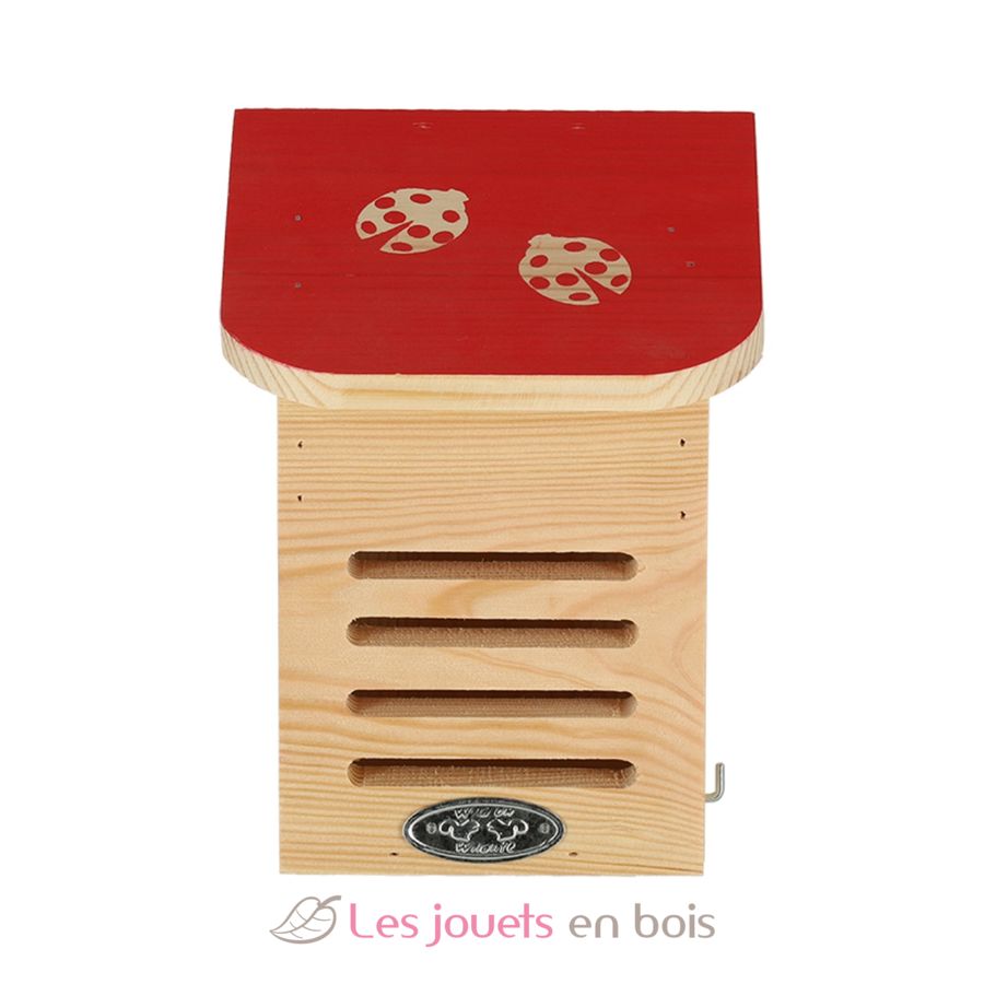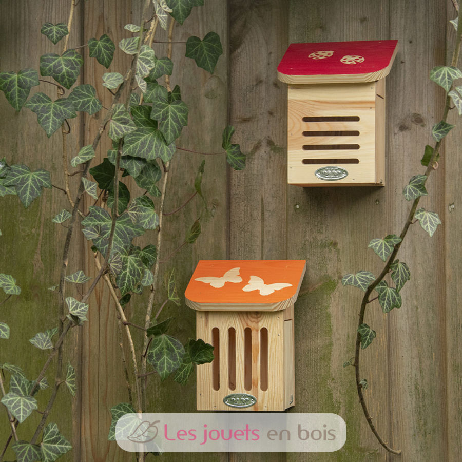 Refugio para mariquitas fabricado en madera de pino con certificación FSC, con un techo de colores brillantes decorado con una silueta de plantilla.