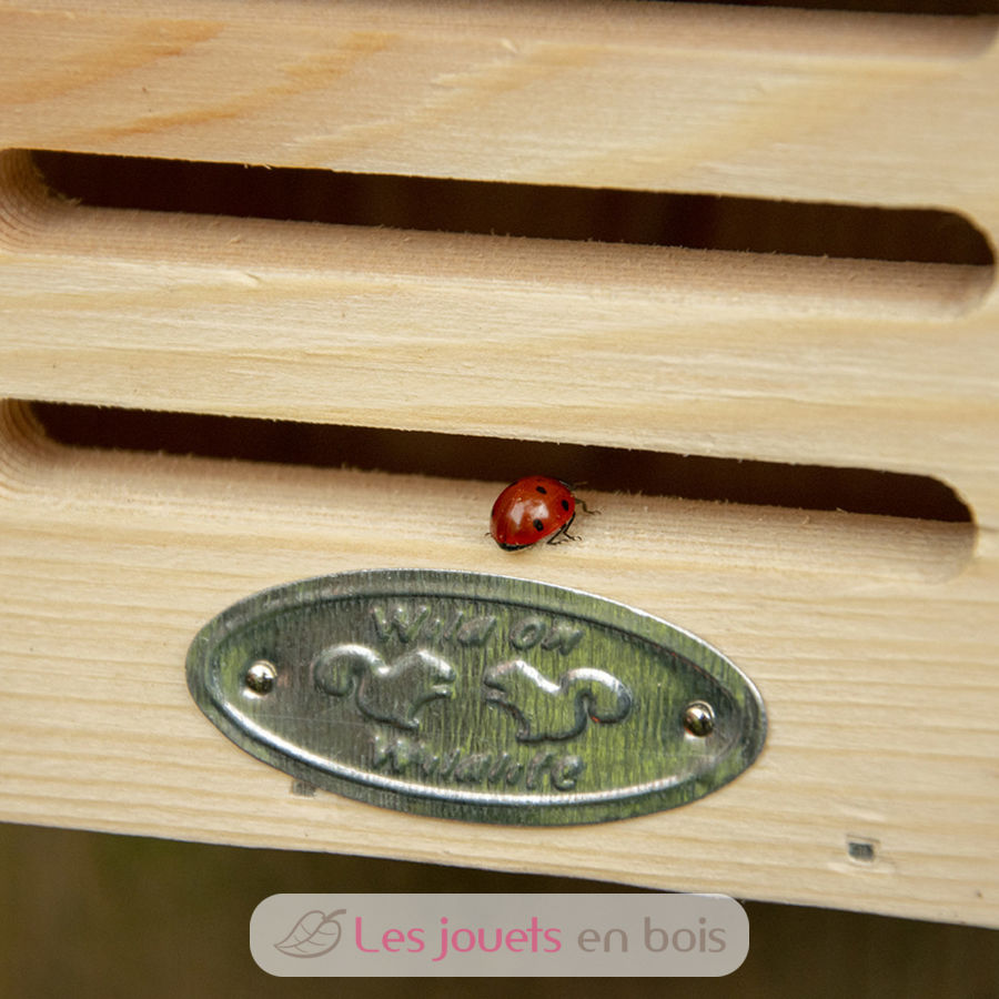 Esta casa proporciona hábitat y protección. El refugio ha sido diseñado para facilitar el acceso de las mariquitas y mantener alejados a los depredadores.