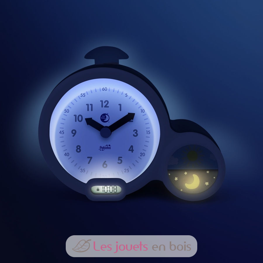 Este reloj despertador evolutivo con un diseño redondo ayuda a tu hijo a llevar la cuenta del tiempo. Cuando la figura se ilumina en la posición de sueño, el niño sabe que todavía es hora de dormir. A la hora fijada por los padres, pasa a la posición de despierto, con o sin alarma, ¡es hora de levantarse! Para los más pequeños, el mini despertador difunde una luz tranquilizadora y para los mayores, aprender a leer la hora es más fácil gracias a la pantalla digital. 3 posibles opciones de alarma: tren, cuco o canto de pájaros.