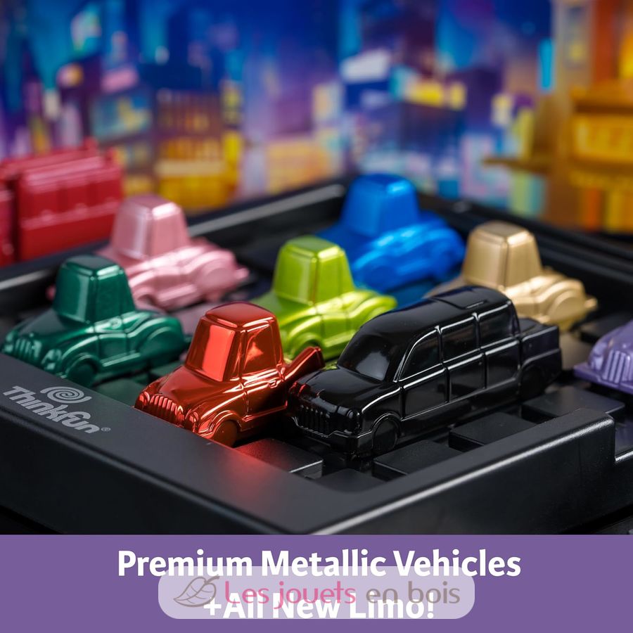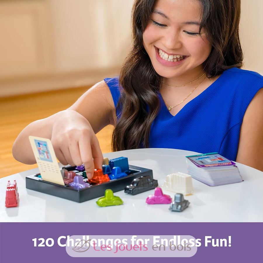 Contenido del juego: 15 vehículos metálicos, 1 coche heroico rojo metálico, 1 cuadrícula de atascos, 60 cartas de desafío con su solución, 1 almacenamiento interior de calidad, una regla del juego.