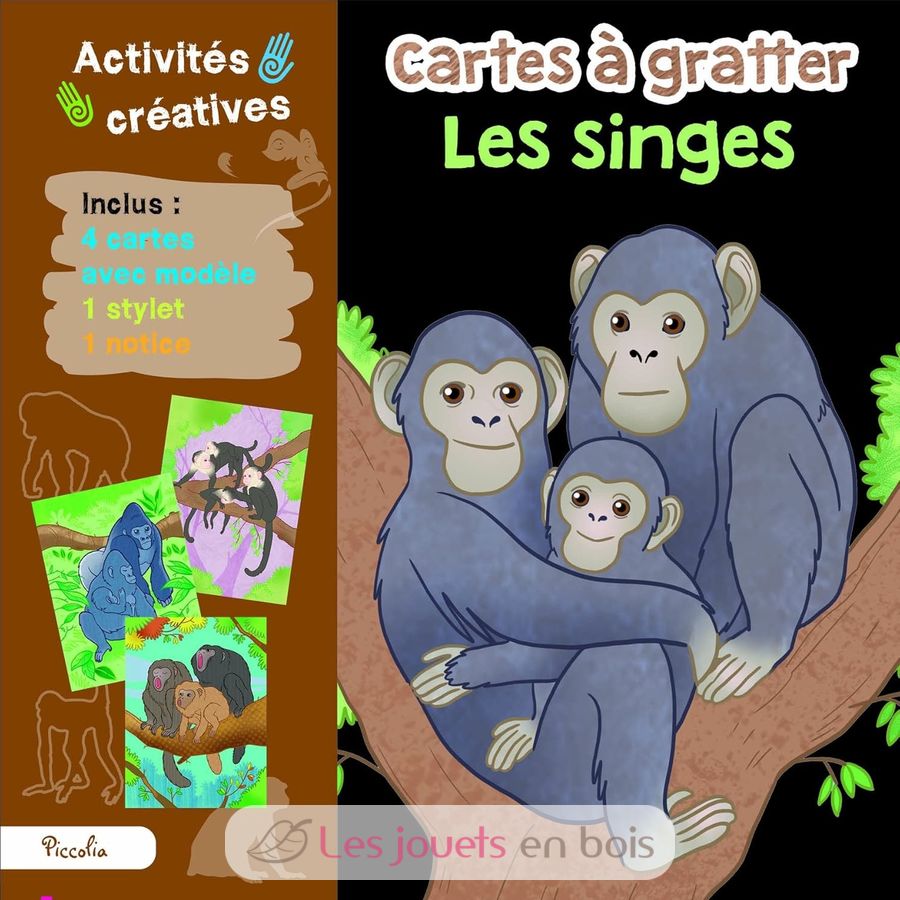 Esta caja incluye 4 tarjetas rasca y gana con modelo, 1 stylus y 1 instructivo. ¡El conjunto es muy colorido con ilustraciones de monos!