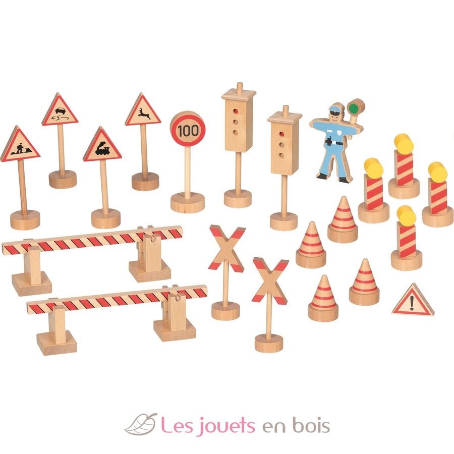 El agente de policía Ole está a cargo del tráfico. Este juego de 20 señales de tráfico de madera le proporciona todo lo necesario para garantizar la seguridad vial.