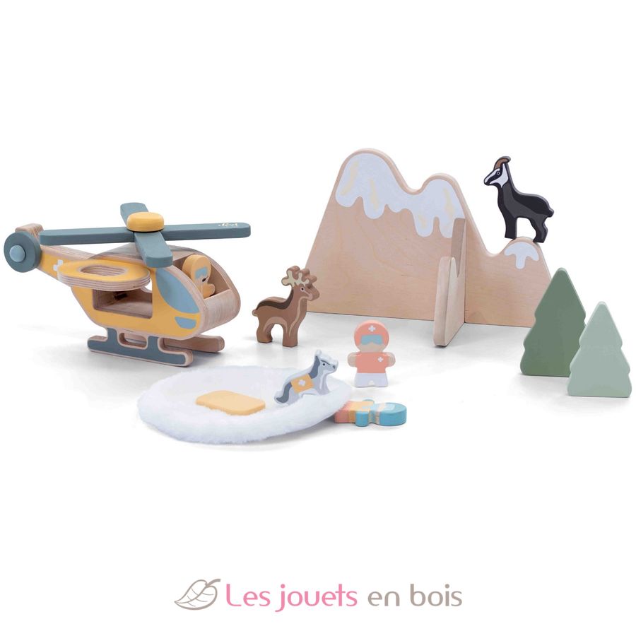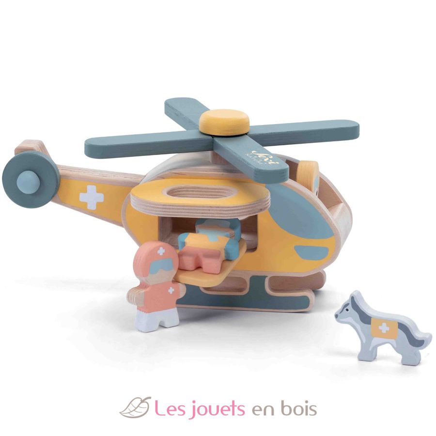 Set de juego de rescate aéreo, un juguete de madera de Sevi.