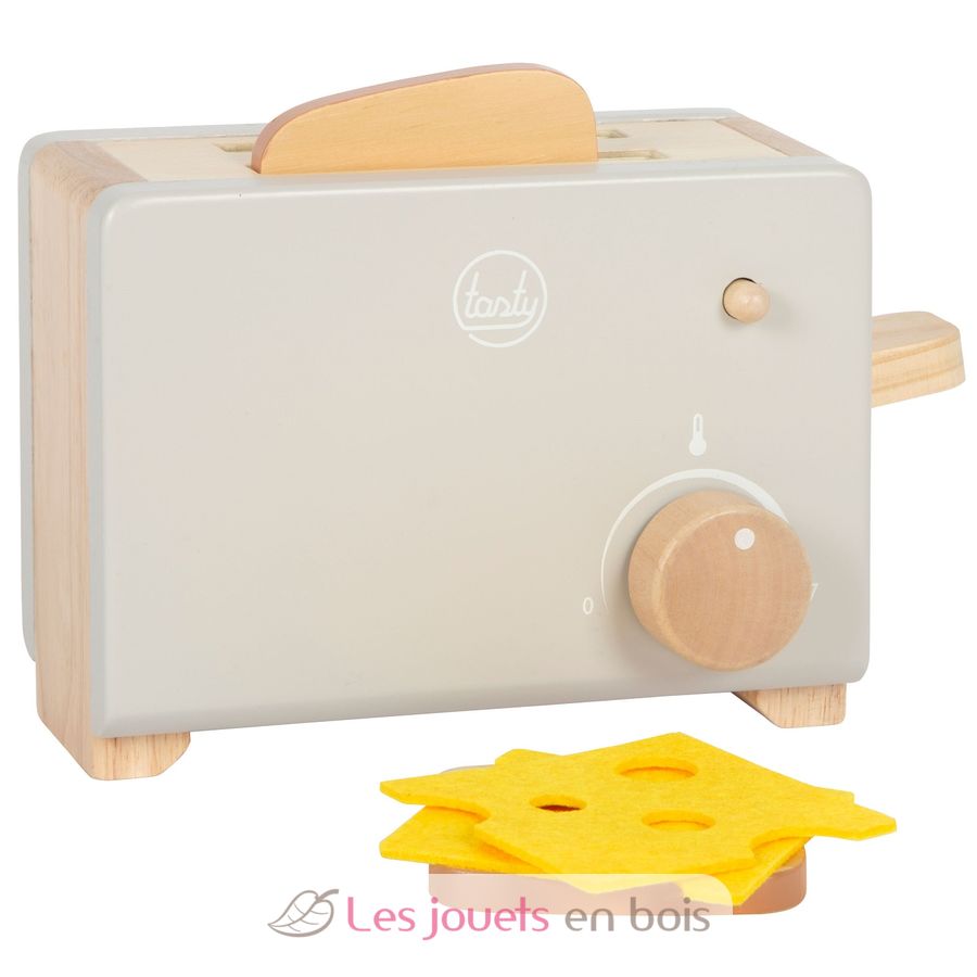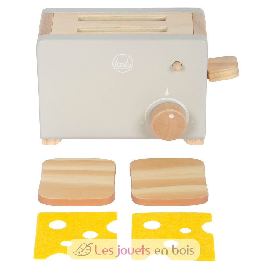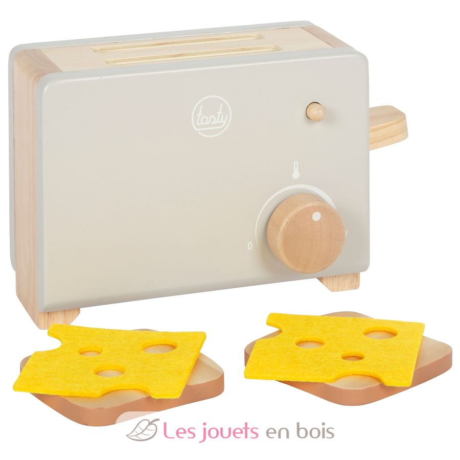 Los accesorios, que consisten en dos tostadas y dos lonchas de queso de fieltro, y el sonido clic del mando de la temperatura, garantizan una diversión lúdica realista.
