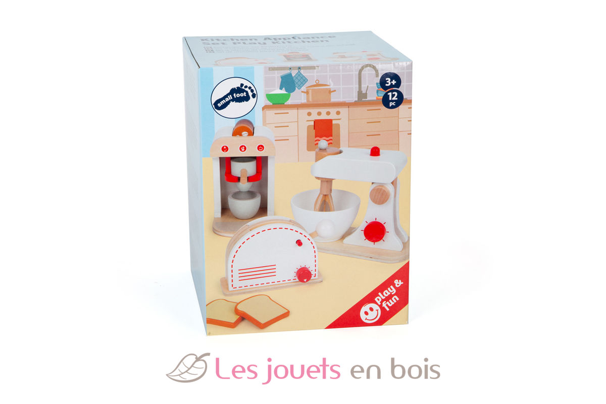 ¡Los ayudantes populares de cocina en un set completo! Este set de utensilios de cocina con tostadora, cafetera y batidora ofrecen todo lo que una cocina infantil bien equipada necesita. Los aparatos de madera estimulan el juego de rol activo y tienen funciones especiales que hacen que el juego sea particularmente realista. Además del sonido de clic de los botones, la tostadora tiene una función emergente que expulsa la tostada una vez hecha. El batidor es giratorio y plegable.