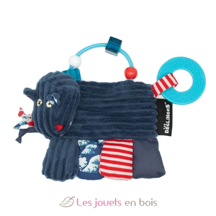 El sonajero de actividades Hippipos el hipopótamo de la marca Les Déglingos es un juguete ideal para estimular la imaginación de los más pequeños. Características técnicas: - Anillo de dentición. - Ábaco. - Etiquetas. - Cascabel. - Lazos. Consejos de limpieza: - Lavar a máquina en frío. - Secar al aire.