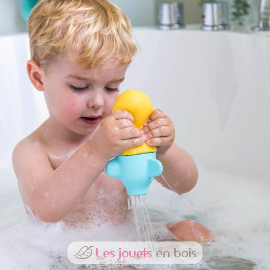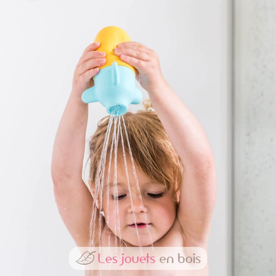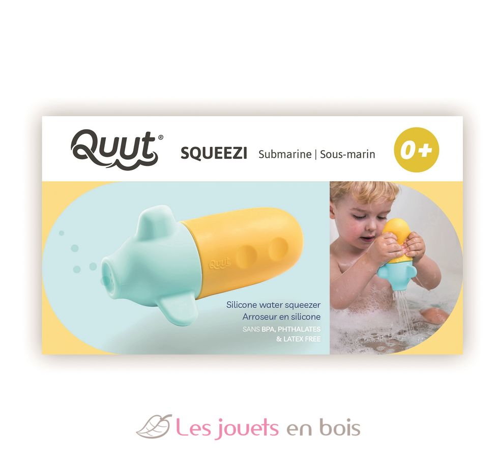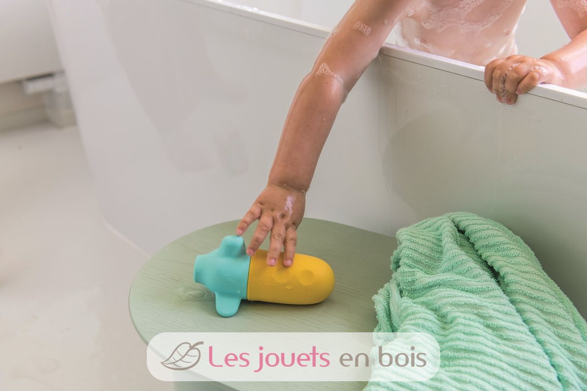 Squeezi el submarino le llevará a las profundidades del océano, ¡o al menos a su bañera! Se puede llenar fácilmente de agua con manos muy pequeñas. Basta con apretarlo cuando esté sumergido para llenarlo de agua y, una vez completado su viaje acuático, expulsar el agua y dejar que el submarino flote. Este rociador de baño está fabricado sin sustancias nocivas (BPA, ftalatos, látex, etc.).