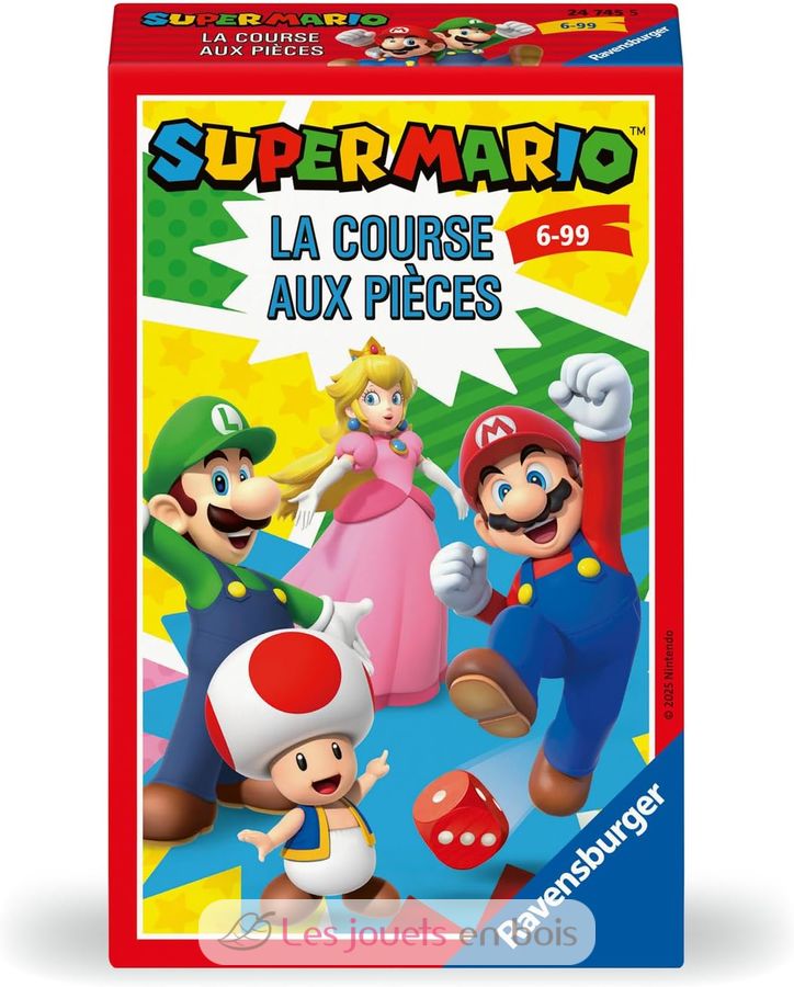 Sumérgete en el divertido mundo de Super Mario con un juego de mesa para toda la familia. Mario, Luigi, Peach o Toad… ¿Quién llegará primero al castillo? Pero ten cuidado, algunas sorpresas te esperan en el camino: obstáculos bloquean el paso y tus oponentes pueden enviarte de regreso al inicio. ¡Necesitarás ser inteligente y tener un poco de suerte con los dados para ganar esta carrera llena de giros y vueltas!