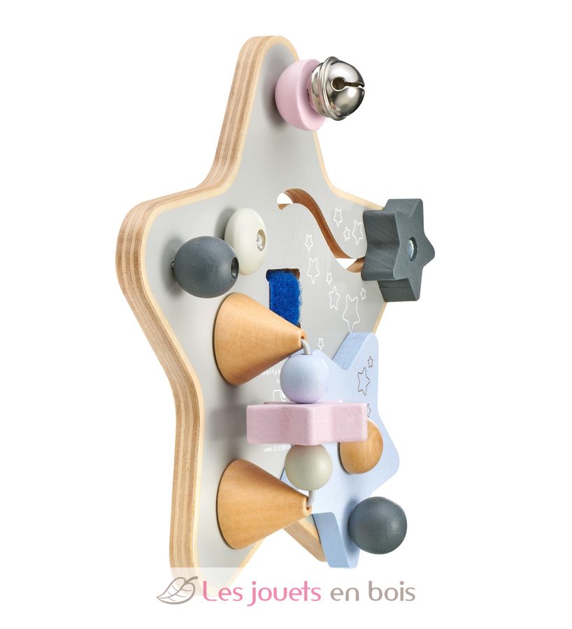 Este tablero de motricidad de madera está formado por varios elementos giratorios y deslizantes que el niño disfrutará descubriendo y manipulando. Los diversos estímulos ópticos y acústicos ayudan a despertar los sentidos del niño.