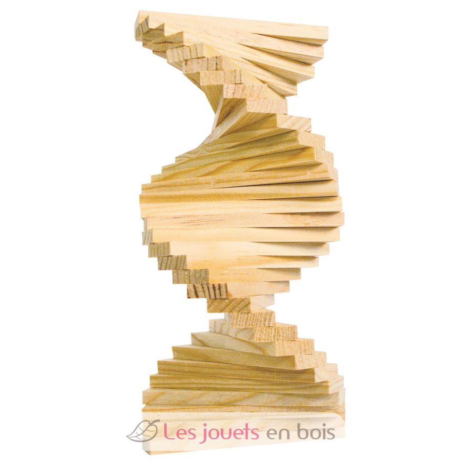 Las tablillas de madera miden 11 cm de largo, 2,2 cm de ancho y 0,7 cm de alto. Pueden apilarse, apoyarse entre sí o equilibrarse sin necesidad de pegamento ni fijaciones.