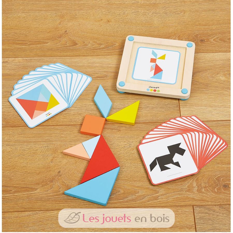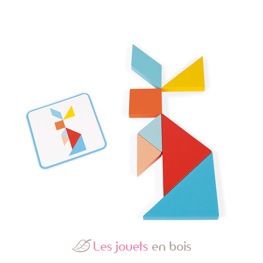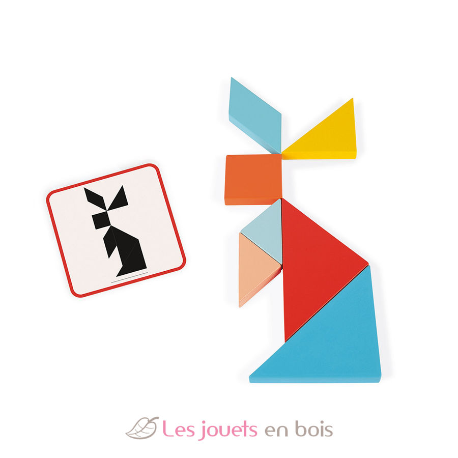 Tangram de madera, un puzzle de la marca Janod. Referencia J05070.
