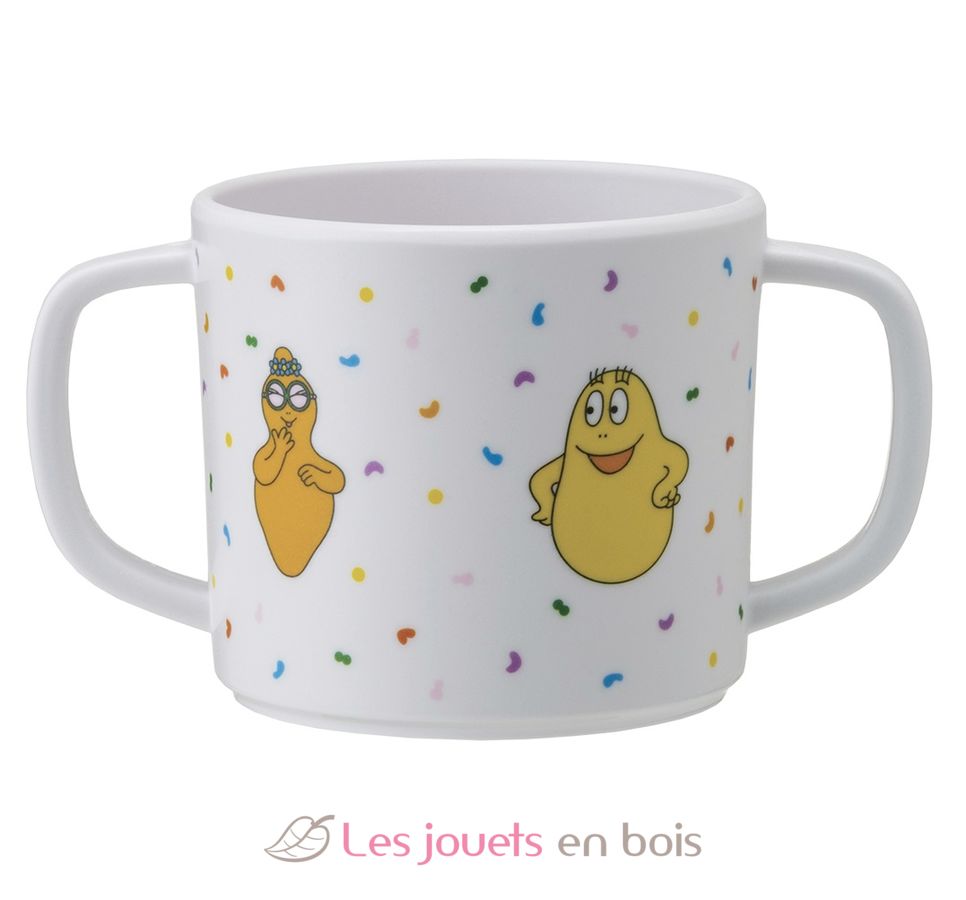 Taza de dos asas con pico extraíble Barbapapá para niños de la marca Petit Jour.