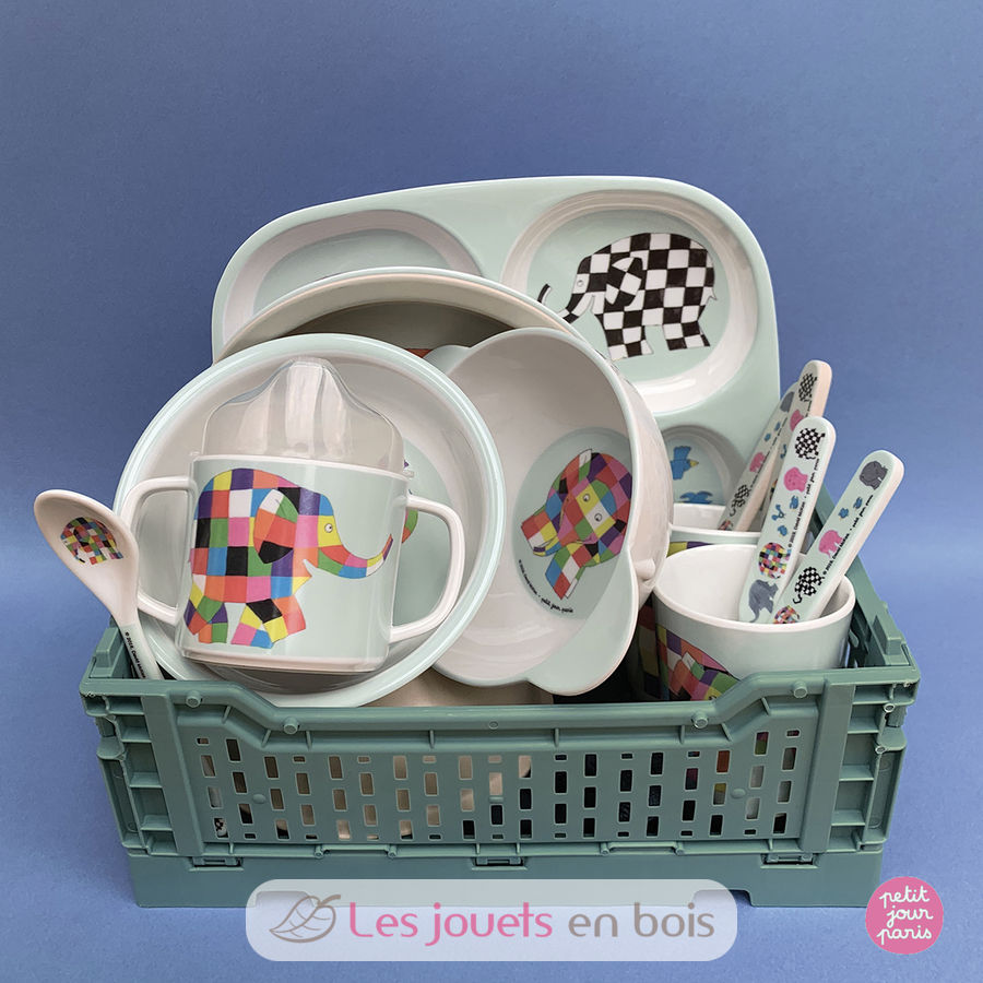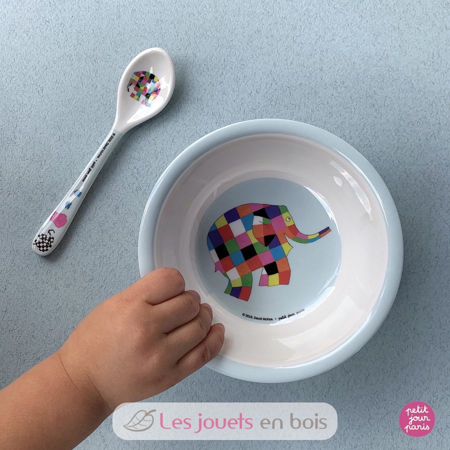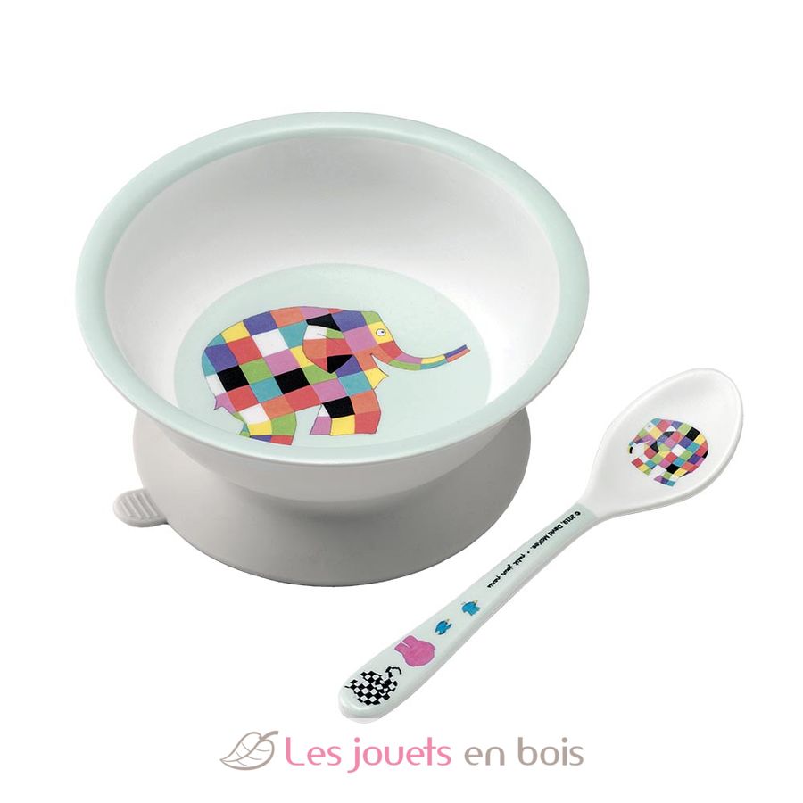 Ventosa con cuchara Elmer, una vajilla infantil de la marca Petit Jour.
