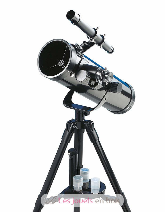 Con todos los accesorios para la observación nocturna: trípode de suelo metálico de 76 cm; objetivo de 76 mm de diámetro; objetivo buscador de 6x25 mm; 3 oculares de cristal intercambiables de 4, 12,5 y 20 mm; objetivo de Barlow de 3x; 1 mapa del cielo para su localización.