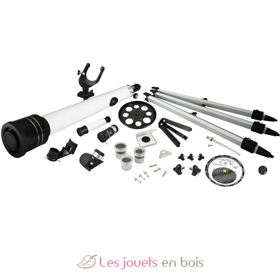 Numerosos accesorios incluidos: objetivo de 5x24 mm, lente Barlow de 3x, filtro lunar y mapa estelar.
