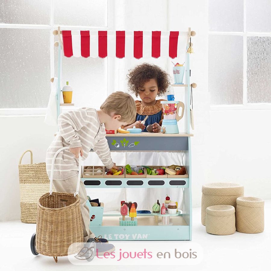 A tu hijo le encantará jugar a ser comerciante y tendero con este puesto de madera de Le Toy Van.