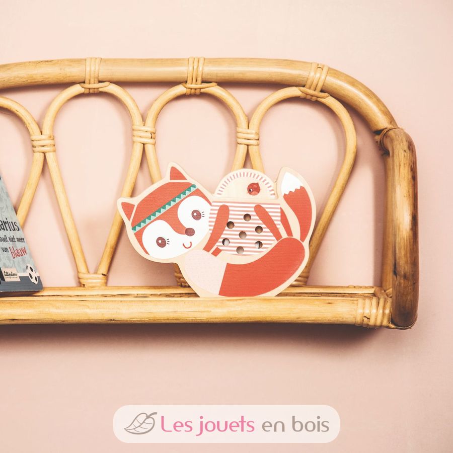La zorra Alice vigila los pequeños ahorros que pongas en esta bonita hucha de madera. Los pequeños agujeros te permiten ver cuántas monedas contiene ya tu hucha.